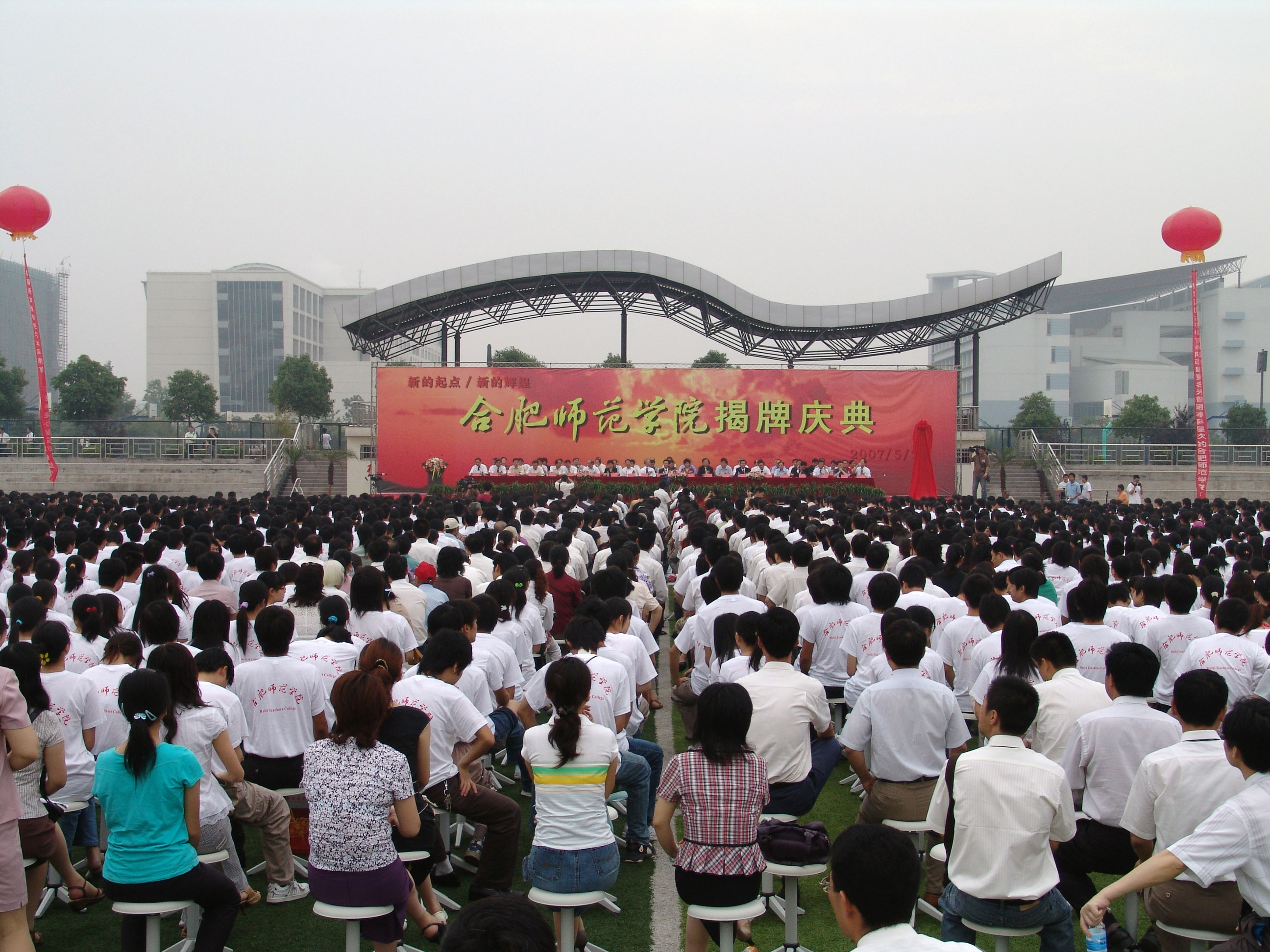 1956年,进修学院经历合并分流的重大调整。以进修学院原有师资、校舍、资产等为基础,独立设置合肥师范专科学校,并由时任进修学院院长张兆甲出任首任党委书记兼校长,以加速普高教育。新成立的合肥师范专科学校最初设有中文、史政、数学、物理、生物五个学科及教育学科教研室、体育教研室,学生785人,教师143人,职工152人。