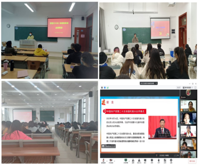 文学院、数学与统计学院等辅导员通过播放视频、演示文稿等方式,从中国共产党成立以来的光辉历程、新时代十年的伟大变革出发,重点讲解了党的二十大召开的重大意义和党的二十大报告的重要内容,引导青年深入了解党和国家的前进方向,并鼓励同学们不负时代、不负韶华、不负党和人民的殷切希望,以昂扬姿态紧跟党奋进新征程、建功新时代。(学生工作部;辅导员协会:郭棒)