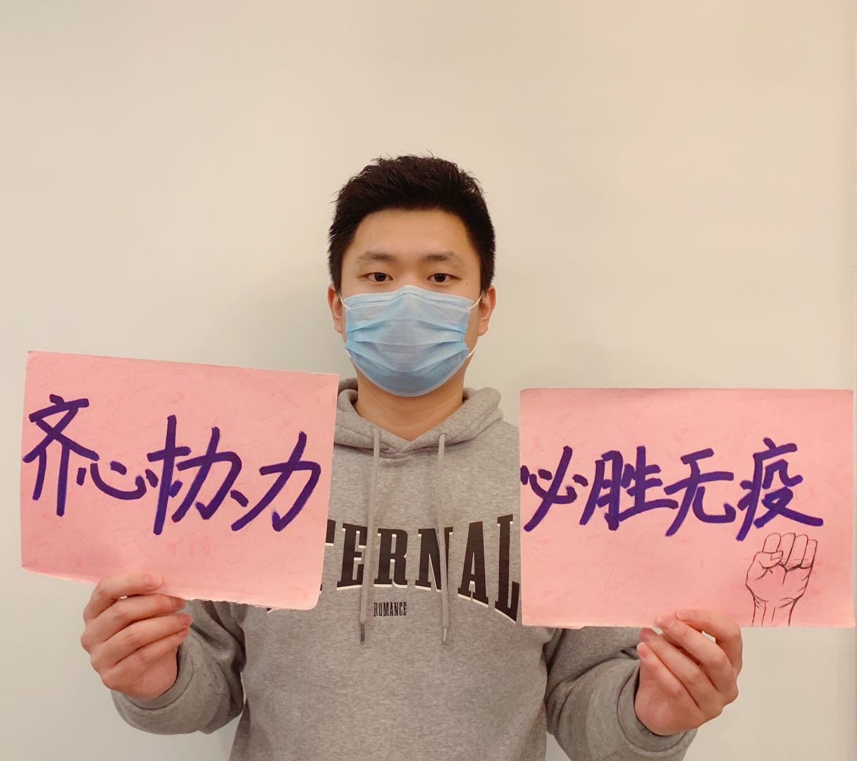 郭棒和他的学生们始终坚信,只要坚定不移执行好学院、学生处关于疫情防控的部署要求,勠力同心、坚定信心,就一定能战胜疫情、平安返校。(党委学工部 数学与统计学院 电子信息与电气工程学院 外国语学院)