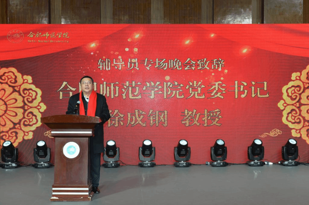徐成钢代表院党委和行政致辞,向全院师生员工,致以新年的祝福,向奋战在学生工作一线的广大学生工作者们致以衷心感谢。他指出,过去的一年,我们过得很充实、走得很坚定。一年来,学院围绕“举行知旗、走应用路、创师范牌”的特色发展之路,凝心聚力,奋发进取,强化党建引领,深化综合改革,优化内涵建设,推动学院地方应用型高水平大学建设取得了新的成效。
