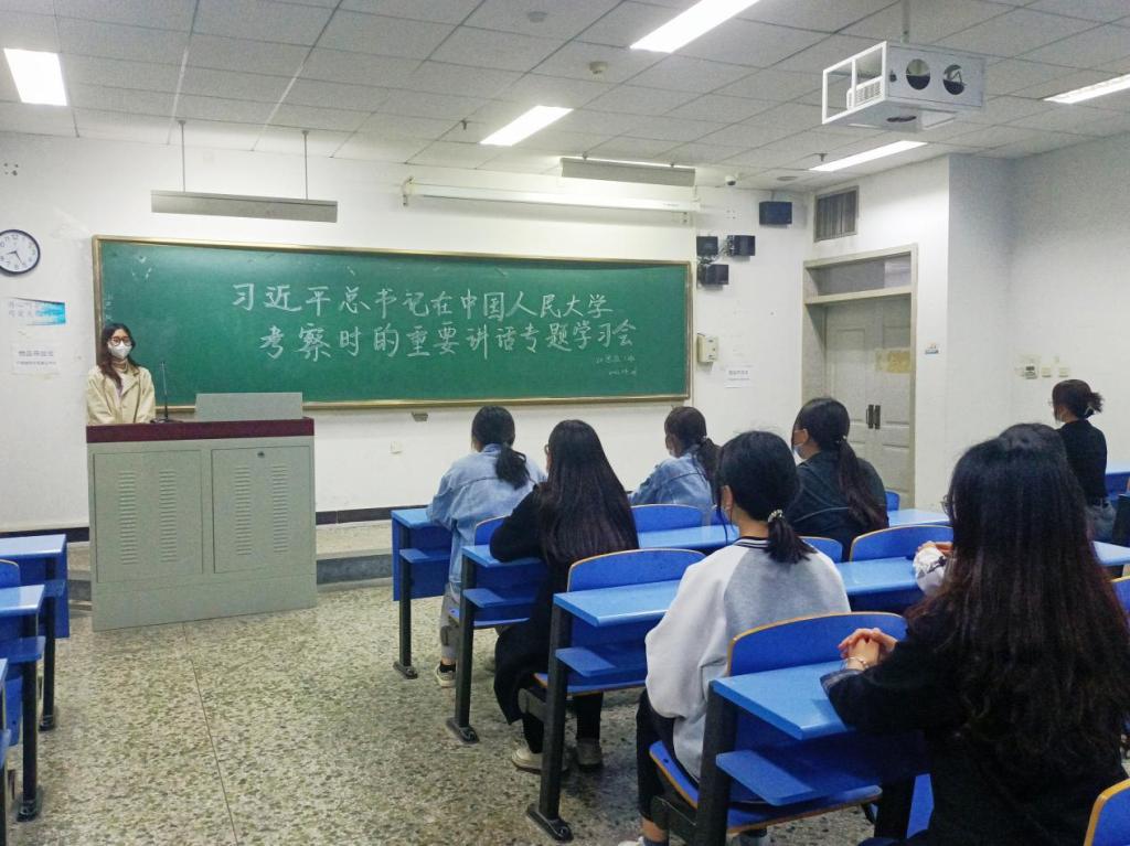 4月26日上午,开云kaiyun官方网站团总支书记李思思主持召开“习近平总书记在中国人民大学考察时的重要讲话精神专题学习会”。学院团总支、学生会、理论社团负责人及各班团学干部共计50人参加专题学习会。学习会上,李思思老师带领团学干部共同观看了习近平总书记在中国人民大学考察的新闻报道,领学了习近平总书记重要讲话精神,团学干部交流了学习体会。李思思老师就学习贯彻习近平总书记重要讲话精神提出了三点要求。一是各团支部迅速组织开展主题团日活动,领悟习近平总书记对青年的殷切期望,要联系实际学,带着感情学,学出信仰,学出担当,体现各团支部的特色。二是团总支、学生会、理论社团要组织“青春心向党·奋进新征程”主题活动,通过丰富多彩的学生活动引导广大学生听党话,跟党走,以实际行动迎接党的二十大胜利召开。三是做好新媒体宣传工作,及时全面展示开云官网的学习成果,展示开云kaiyun官方网站学生的良好精神风貌。