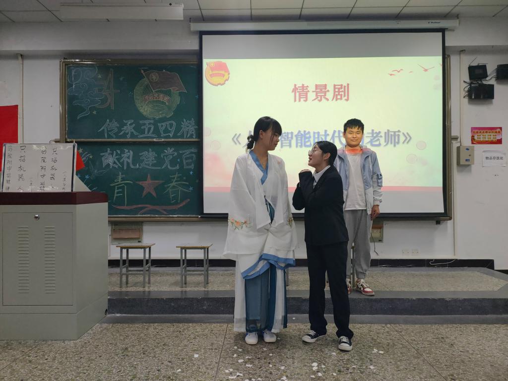 线下团日学习中,同学们以热情高涨,慷慨激昂的团歌和入团誓词表达了一心向团向党的初心和信念,同时集中学习了五四历史、中国共产党党史和“十四五”规划。杨慧丽、郝春天、杨玉桐、张睿臻、王凯杰五名同学带来的朗诵《五四的火焰》发人深省,号召青年人以民主、科学、爱国、进步之姿,吹响时代的号角,引发了同学们关于青春责任担当的反思;白思宇、王博宇等同学演绎情景剧《人工智能时代的老师》,将人工智能与五四爱国、进步精神相结合,深刻的展示出了在人工智能发展大势下,青年教师应该承担的责任和担当,获得同学们的一致好评。最后江林壑同学作为疫情防控优秀志愿者代表开展志愿宣讲,激励开云官网团员青年胸怀祖国,志存高远,积极投身社会志愿服务之中发光发热。