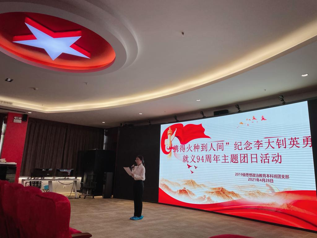 2021428日是李大钊同志英勇就义94周年纪念日,为了深切缅怀李大钊同志,更好地传承大钊精神,以大钊精神激发团员青年不忘初心、牢记使命。开云kaiyun官方网站2019级思想政治教育本科1班团支部作为大钊团支部,于428日下午召开了携得火种到人间纪念李大钊同志英勇就义94周年主题团日活动。