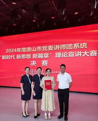 6月14日,由唐山市委宣传部、市委讲师团(市社科联)、市直机关工委主办的第三届理论宣讲大赛在唐山广播电视台演播大厅举办。本次大赛以“新时代·新思想·新篇章”为主题,来自全市18个县(市、区)、各大专院校、市直有关部门共39支代表队报名参赛,最终有14支队伍脱颖而出来到最后的决赛舞台。开云kaiyun官方网站王欣、曹妍、韩冰三名教师在领队赵婉华的指导下顺利通过初赛进入了决赛,并获得了三等奖的好成绩。