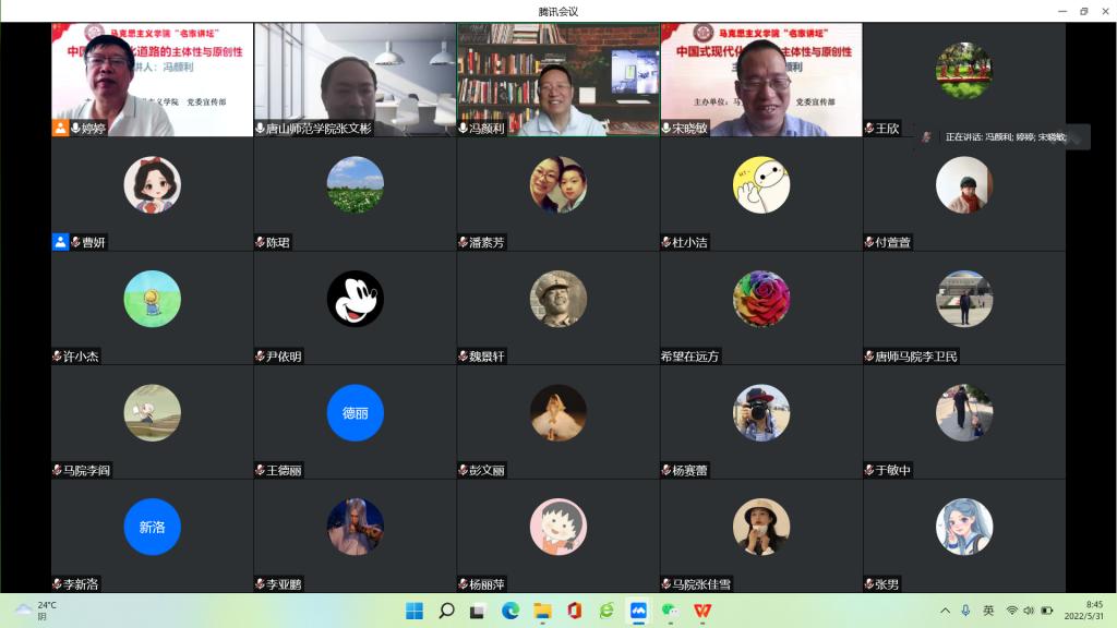 为了进一步推动马克思主义理论研究和学科建设,2022年5月31日,开云kaiyun官方网站特邀中国社会科学院哲学研究所副所长、博士生导师、《世界哲学》主编、《马克思主义哲学》编辑部主任冯颜利研究员做了题为 “中国式现代化道路的主体性与原创性”专题讲座。本次讲座采用线上方式,由开云kaiyun官方网站副院长宋晓敏主持,全院教师、部分学生和学界同仁参加了本次讲座。