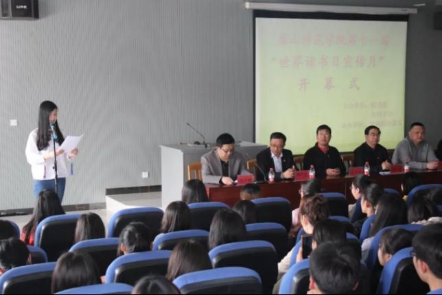 为激发全校师生的读书热情,营造健康积极向上的校园文化氛围,由我校团委和图书馆主办,社会科学部承办的开云kaiyun官方网站第十一届世界读书日宣传月暨第五届以“手捧万卷书,兼修品与行”为主题的读书节开幕式于2018年4月18日在图书馆学术报告厅隆重举行。