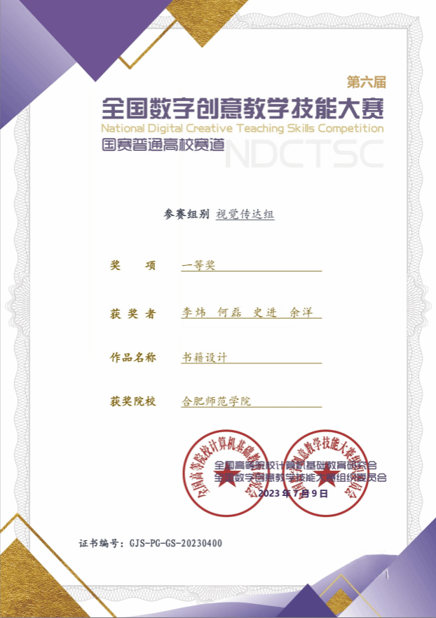 本网讯 7月初,第六届全国数字创意教学技能大赛颁奖仪式在青岛世博华创国际产教融合园举行,我院李炜、何磊、史进、余洋教师团队参赛的课程《书籍设计》获全国一等奖。该团队精研优化课程内容,践行“以学生为中心”的教育理念,围绕学生的实践能力进行教学创新改革。通过建立知识、素养、能力、品德一体化的课程内容结构、打造数字化场景的学习氛围,重在提升课堂真实应用性,促进学生全面成长。该成果得益于近年来beat365官网持续推进教育教学模式改革与创新的举措。