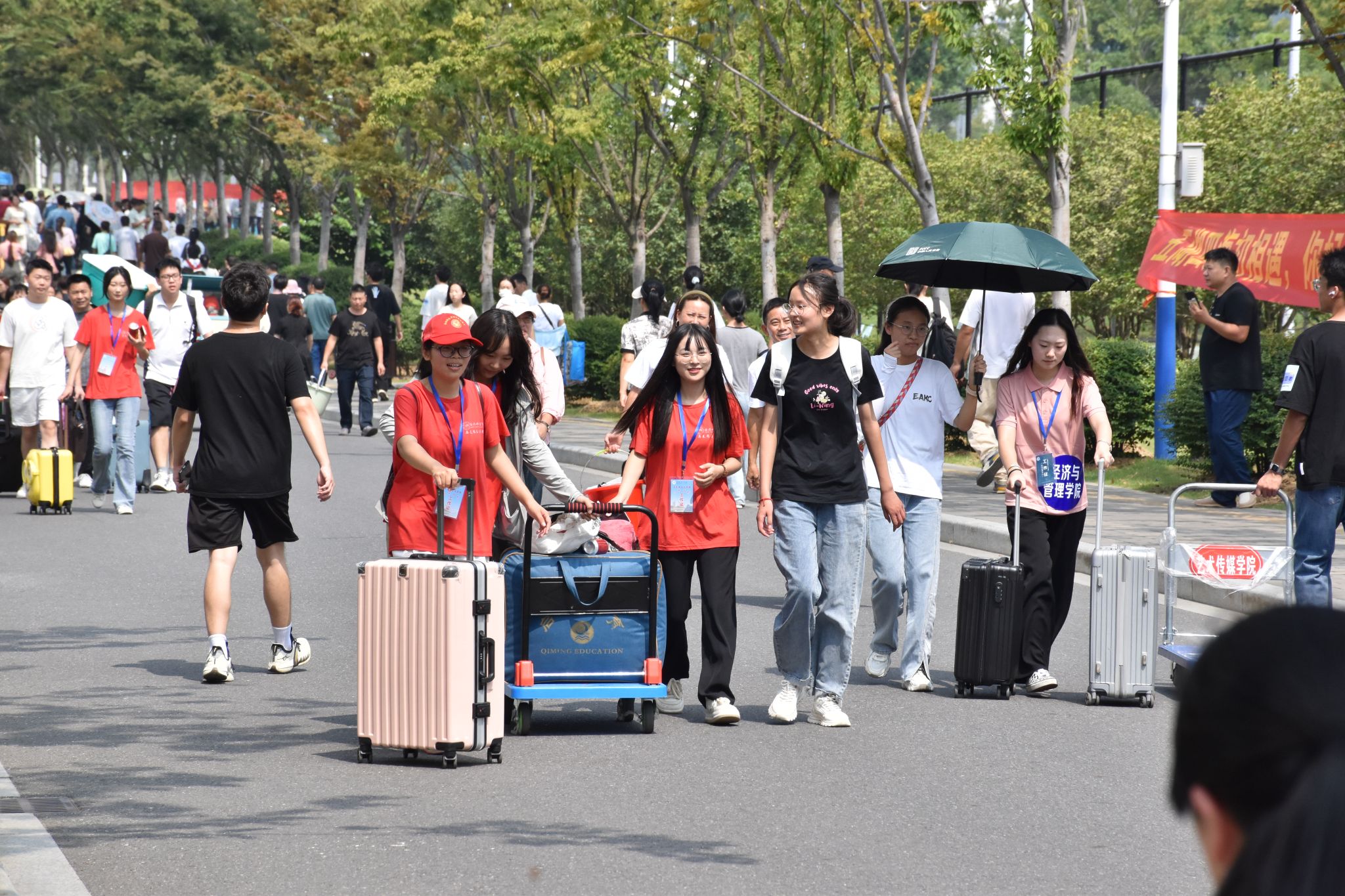 “志愿者们太热情了,我们家长都插不上手,谢谢你们!”“还好有你们,不然真的没有这么顺畅的完成报到手续,真的给我节约了很多时间。”迎新志愿者们周到细致的服务收获了新生和家长的好评,用行动为迎新工作平添了一抹“亮色”。