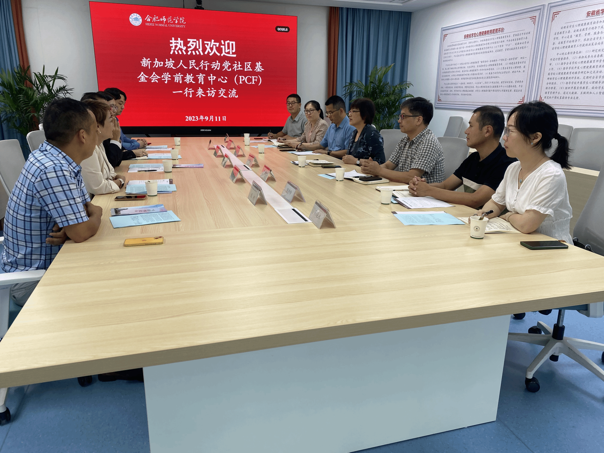 本网讯 9月11日下午,新加坡人民行动党社区基金会学前教育中心(PCF)执行董事佘贵添率团来访我院,学院党委副书记、院长方东玲,学院党委委员、副院长华银峰热情接待了来访嘉宾,国际交流与合作处、教育与心理科学学院相关负责人参加了这次交流会。