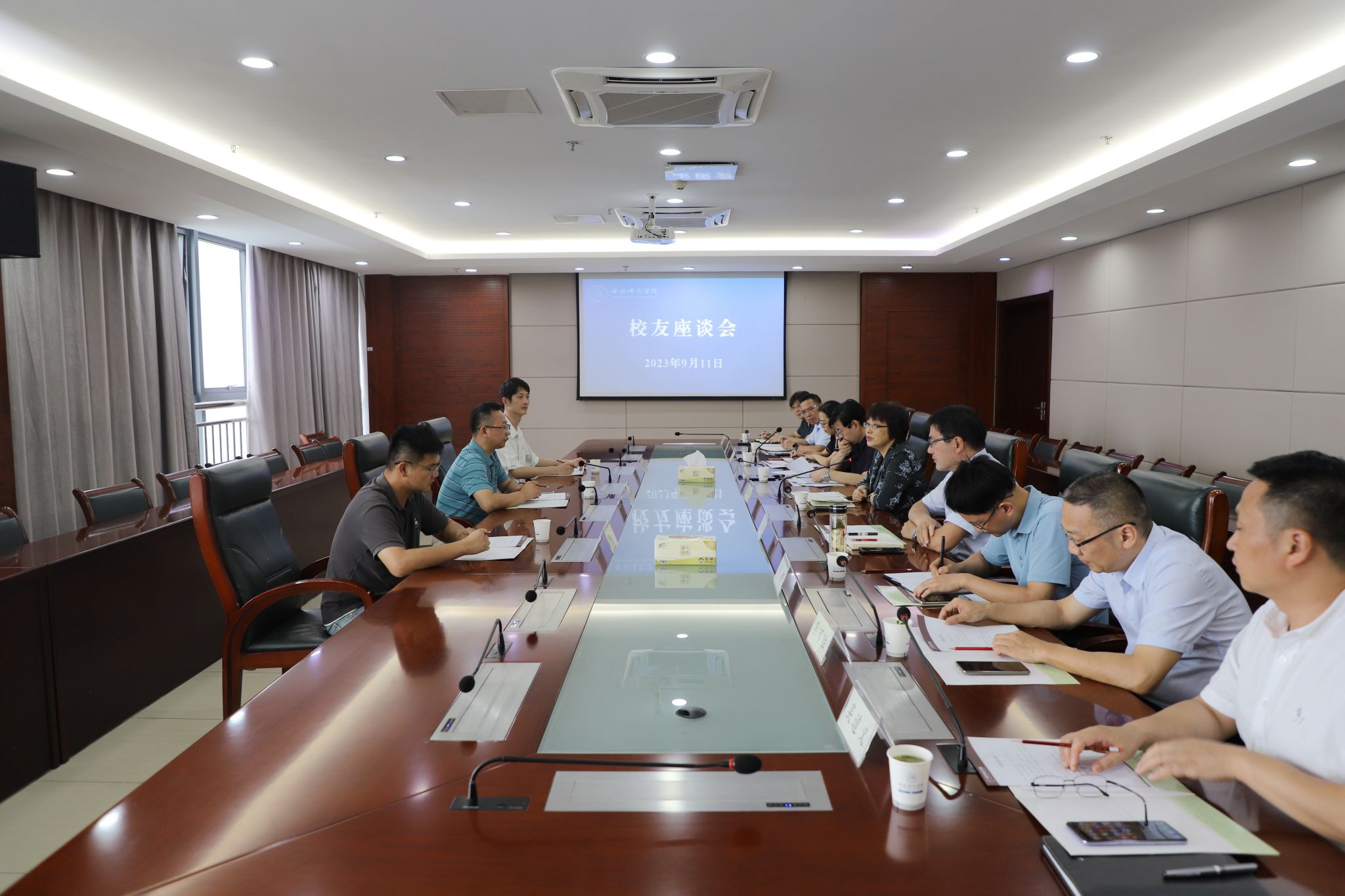 下午学院在2008会议室举行了校友座谈会。院党委副书记、院长方东玲,院党委委员、副院长周端明,三六六集团董事长周扬海校友,三六六集团董事长助理胡义胜校友,三六六教育集团合肥兴乡网络科技公司总经理刘鹤等出席会议。发展规划处(校友办)、教务处、就业创业工作处、文学院、外国语学院、经济与管理学院、美术与设计学院等单位负责同志参加会议。会议由发展规划处(校友办)副处长樊彩萍主持。