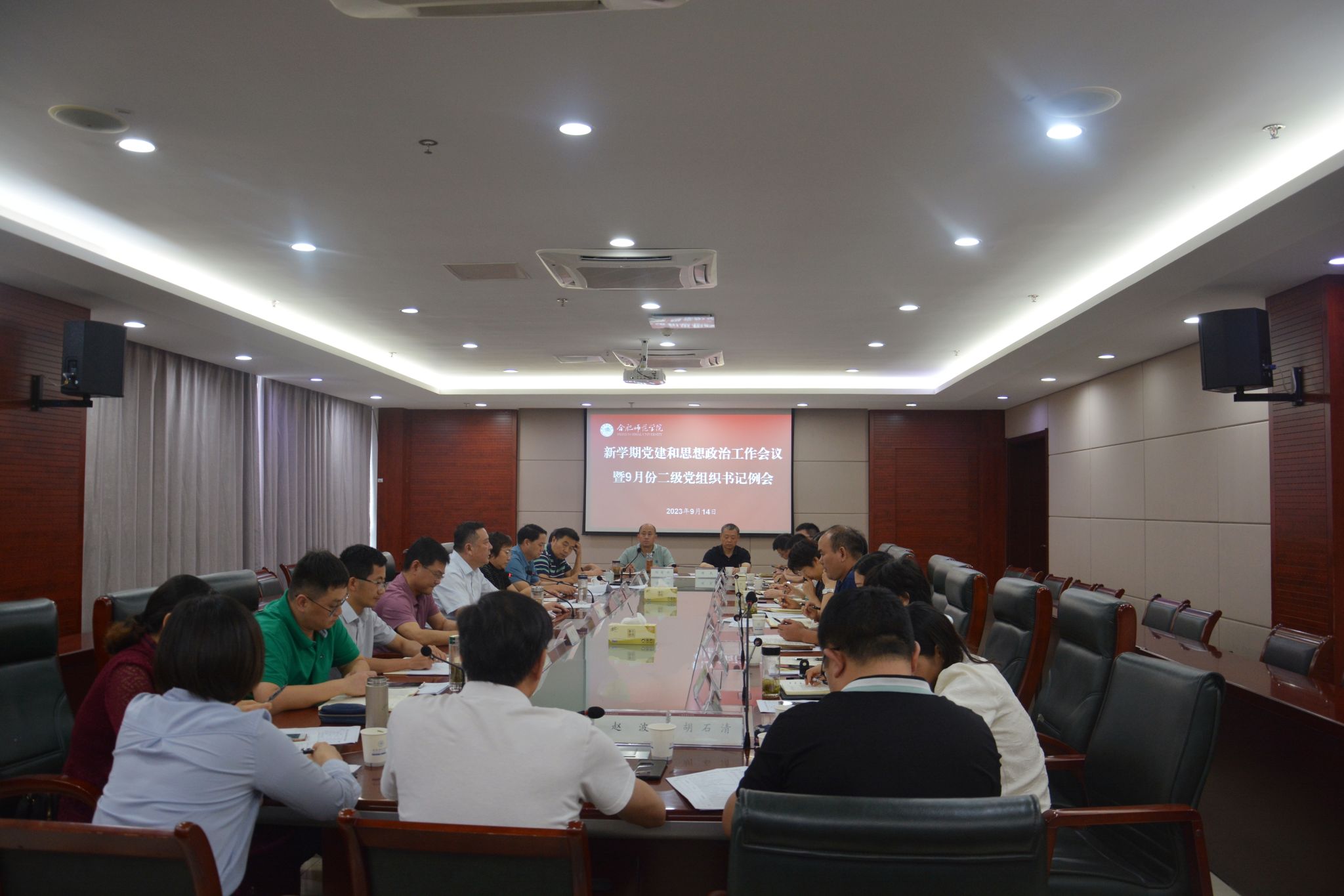 本网讯 9月14日下午,学院在锦绣校区行知楼第二会议室召开二级党组织书记会议,部署新学期党建和思想政治工作。党委书记徐成钢出席会议并讲话,各二级党组织书记,组织部、党政办、纪委办、党委教师工作部、宣传部、团委、学生工作部等部门负责人参加会议。会议由党委副书记梁立昌主持。