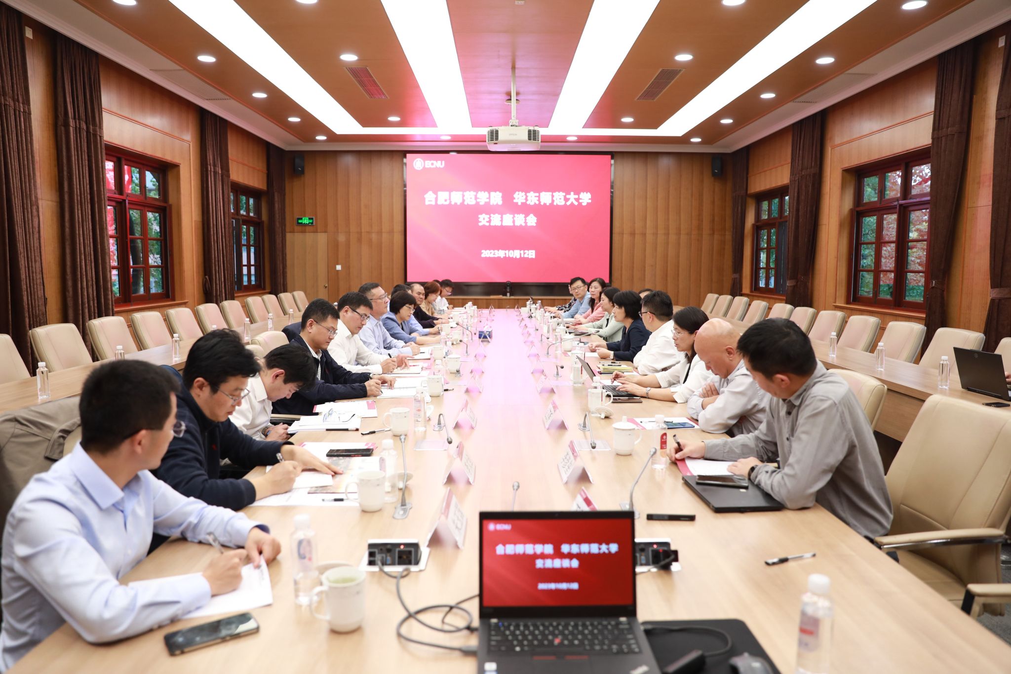 10月12日,院党委书记徐成钢,党委副书记、院长方东玲带队赴华东师范大学开展学习调研,党委委员、副院长周端明,原党委副书记、副院长李进华以及党政办、组织部、人事处、教务处、科研处、发展规划处和教育与心理科学学院主要负责人参加调研。华东师范大学党委书记梅兵、校长钱旭红、副校长戴立益、副校长雷启立等会见了徐成钢、方东玲一行。两校进行了座谈交流,座谈会由华东师大副校长戴立益主持。
