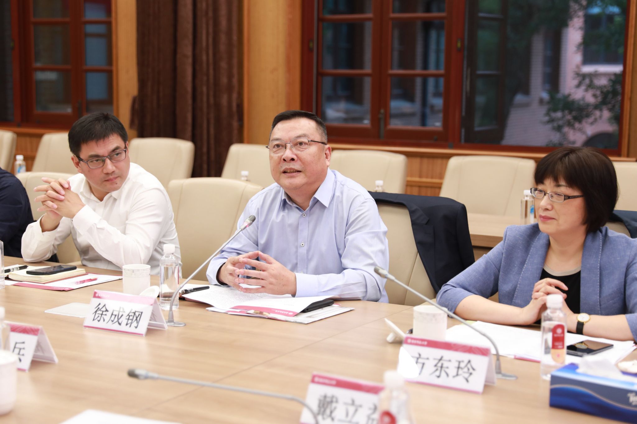 徐成钢在讲话中,感谢华东师大热情细致的接待。他指出,近年来华东师大取得了令人瞩目的成绩,值得吸收经验和借鉴举措。希望两校能够在党的建设、学科专业建设、师资队伍建设、干部队伍建设、人才培养、科学研究等方面加强合作,助推我院深度融入长三角一体化发展,为学校一体推进“申硕更大”提供动力支撑。
