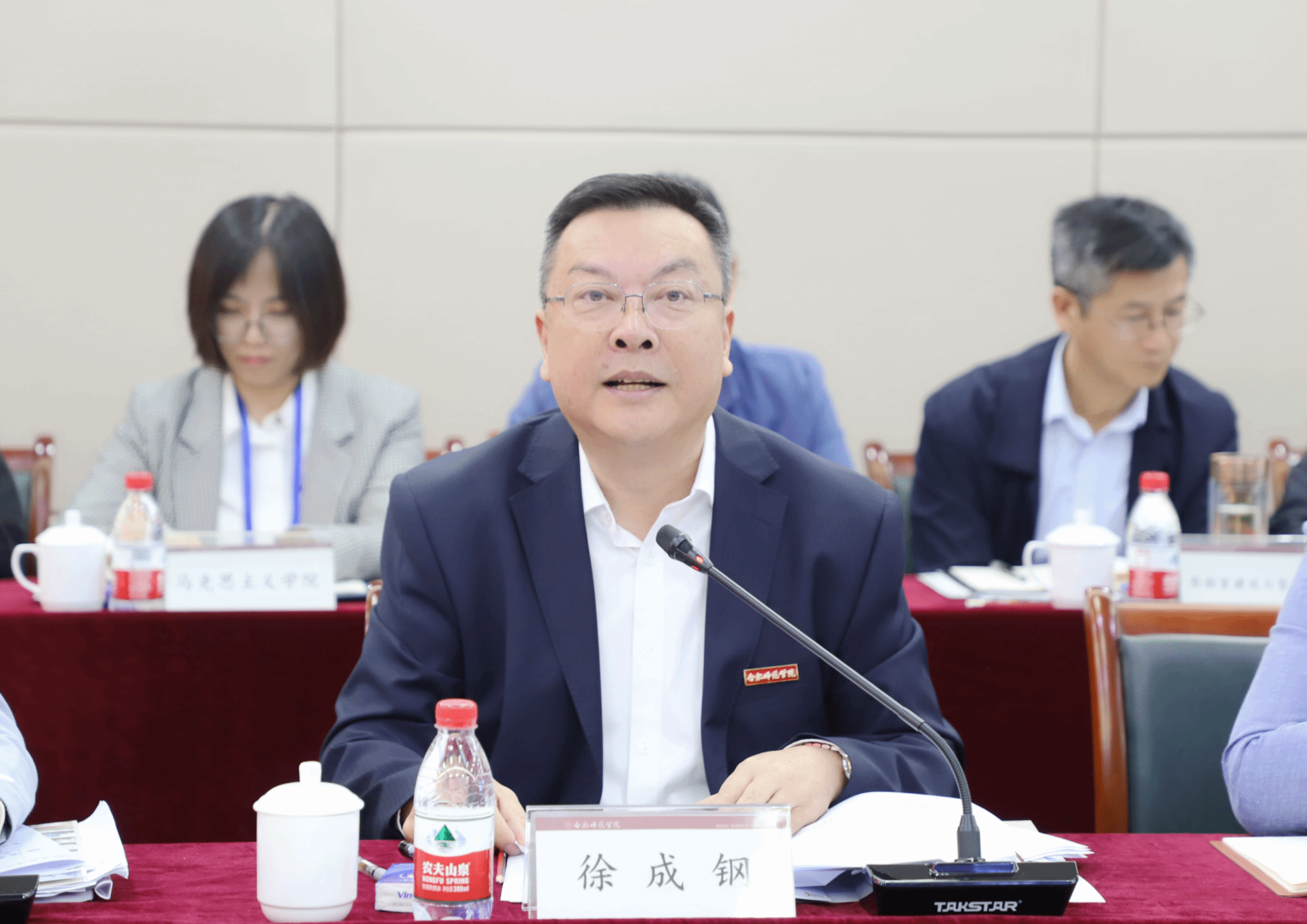 徐成钢对专家组来校开展师范类专业联合认证工作表示欢迎和感谢,他从弘扬“行知文化”,引领师范专业建设;打造“六位一体”,赋能师范专业发展;强化“产出导向”,深化师范专业改革等三个方面对beat365官网师范专业建设情况进行了详细地介绍。他强调,学校立足党的教育方针与陶行知教育思想倡导的爱国、求真、实践、创造等理念内涵上高度一致,立足习近平总书记“四有好老师”等重要论述与陶行知教育思想高度契合,立足“师范性、应用型”办学定位和应用办学需求,坚持将践行行知精神与加强思想政治教育、践行社会主义核心价值观结合起来,贯穿办学育人全过程。他指出,坚定不移创师范牌,是合师的发展战略。学院将本着“虚心求教、坦诚务实”的态度,积极主动配合专家组工作,认真落实专家指导意见,努力把师范专业建设好、把师范生培养好,加快建设特色鲜明的地方应用型高水平师范大学,为教育强省、教育强国建设贡献合师力量。