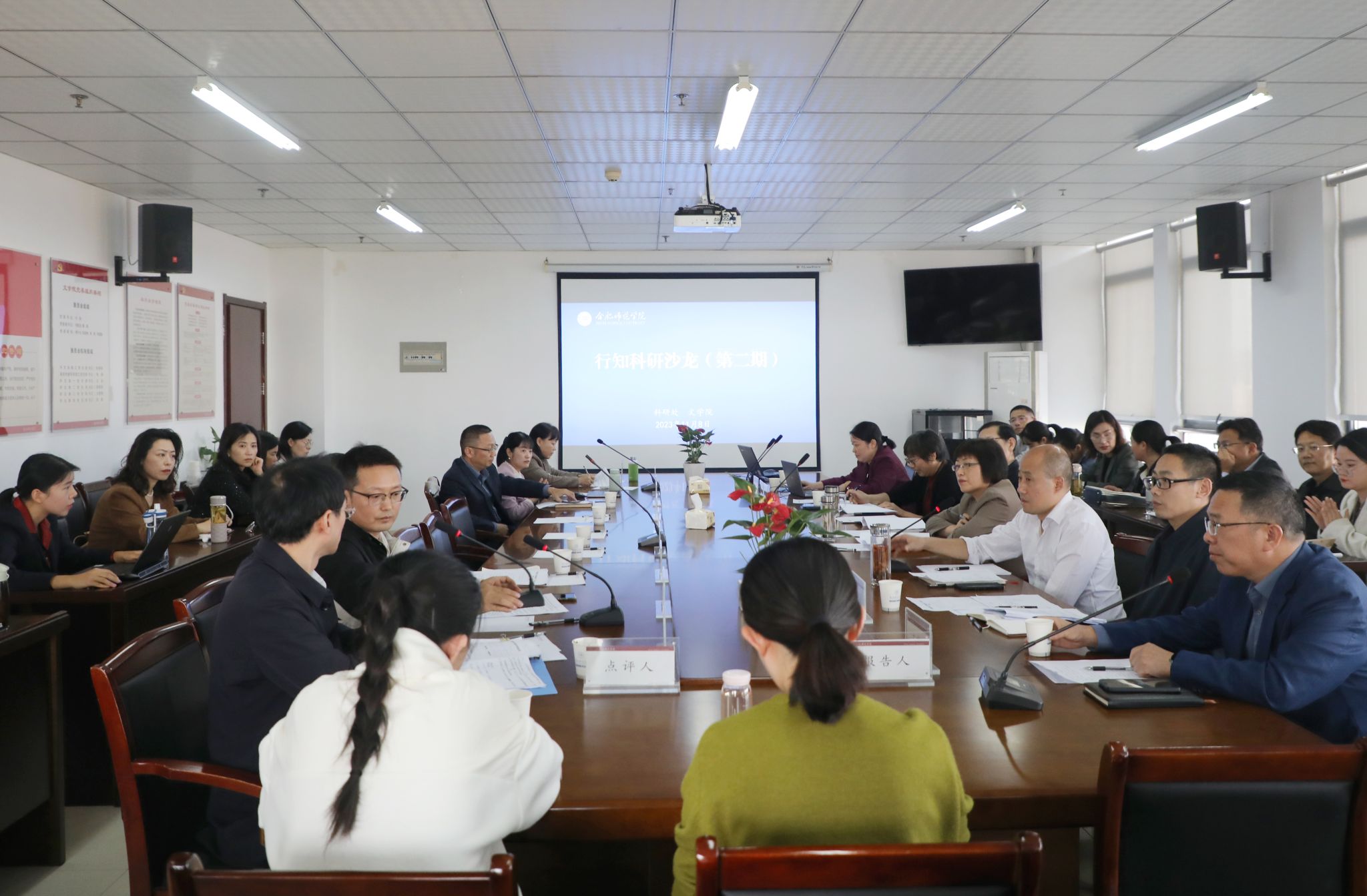 11月8日下午,学院在锦绣校区行知楼举办了主题为“聚焦‘申硕更大’,推进高层次项目申报”的第二期“行知科研沙龙”。本次沙龙由科研处主办,文学院承办。院党委副书记、院长方东玲出席科研沙龙,相关部门和文科二级学院领导、教师近40人参加了此次沙龙。沙龙由机关第二党委书记、科研处副处长陶有浩主持。