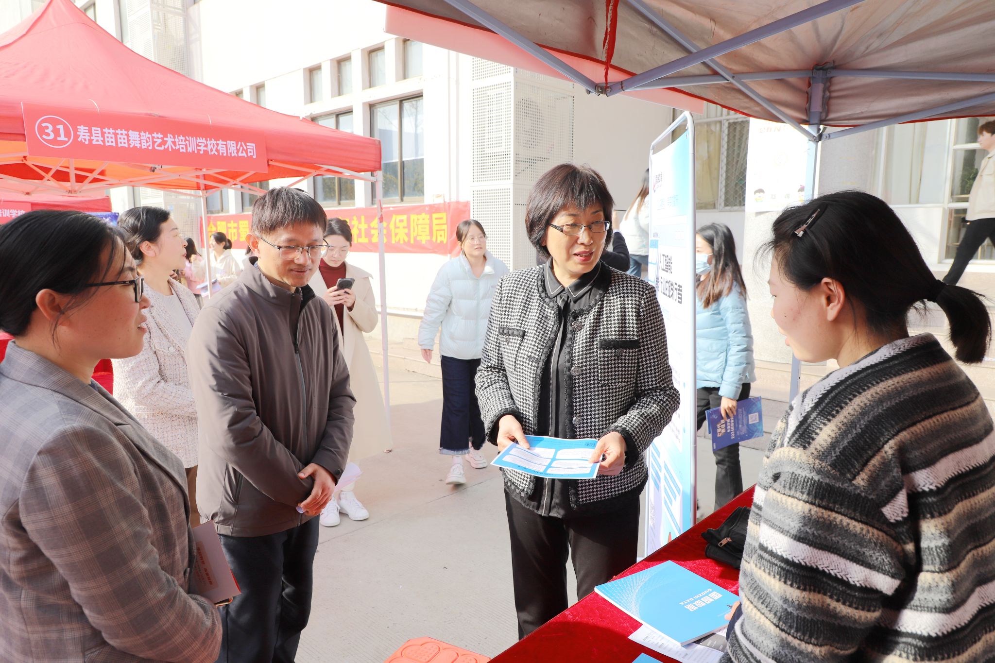 为切实做好2024届毕业生的就业工作,搭建用人单位与毕业生之间良好的供需平台,促进学生更高质量就业,11月15日下午,学院2024届毕业生秋季校园双选会在锦绣校区博约楼南广场举行。院党委书记徐成钢,党委副书记、院长方东玲,党委委员、纪委书记、监察专员徐文林,党委委员、副院长周端明等领导深入招聘会现场指导,并与用人单位代表和毕业生亲切交流。