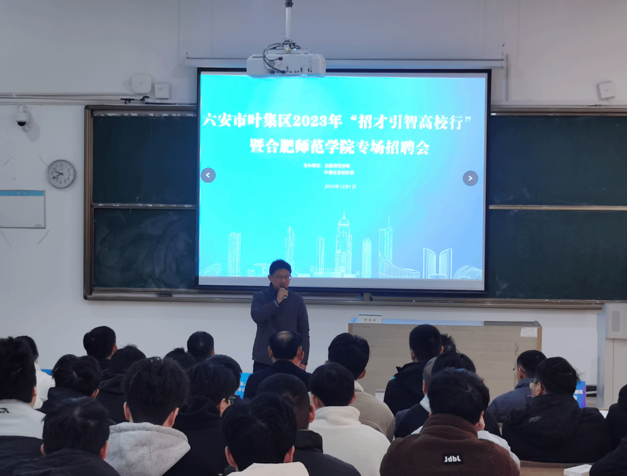 交流会召开的同时,来自叶集区的六安市辉正检验检测有限公司、光大生物热电(六安)有限公司、六安先微半导体材料有限公司等九家企业于锦绣校区博约楼108教室开展校园宣讲招聘会。