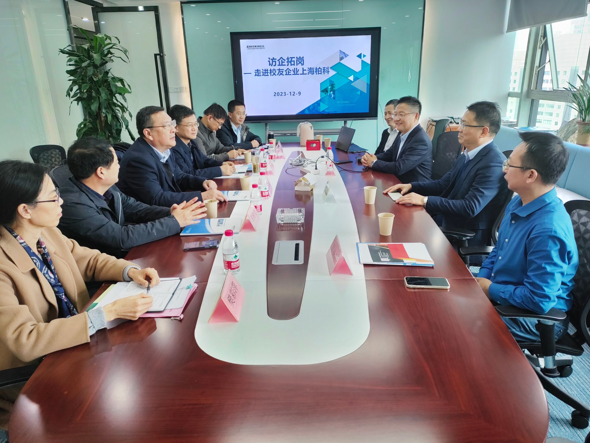 曹鹏对徐成钢一行表示热烈欢迎并介绍了柏科发展情况。柏科由曹鹏于2005年创建,2017年上市,是国内领先的环境、健康安全(EHS)管理咨询服务商,与丹麦、美国、加拿大、澳大利亚等多国企业有合作。目前已为600多家中外客户提供EHS(环境、健康安全)咨询服务,顾客满意度超过90%。典型客户包括杜邦纤维中国、GE塑料上海、可口可乐中国、联合利华中国、TNT中国、阿克苏-诺贝尔工业涂料部等。