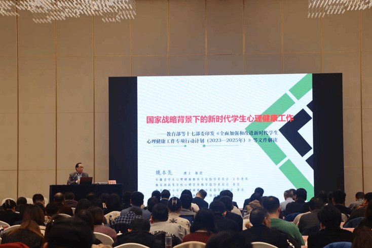 姚本先教授和华中师范大学任志洪教授分别作《十七部委的心理健康<行动计划>进行解读》和《心理健康数字化干预》专题讲座;中国科学技术大学沈克祥教授、安庆医药高等专科学校陈琪教授、芜湖市教育局伍小平副局长等三人分别作交流发言。
