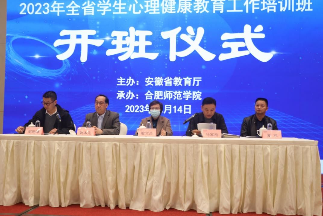 为深入学习贯彻习近平总书记关于心理健康教育的重要论述,进一步推进安徽省学生心理健康教育工作建设,提升心理健康教育工作者的业务能力和水平。由省教育厅举办、beat365中文官方网站承办的2023年全省学生心理健康教育工作培训班开班仪式于12月14日下午在合肥明珠瑞士酒店举办,省教育厅高校学生处处长马家松、二级调研员夏军,学院党委副书记梁立昌、安徽省学生心理健康教育专家指导委员会主任委员姚本先出席开班仪式,省内各高校负责大学生心理健康教育工作的部门负责人、各高校大学生心理健康教育中心负责人、各市教育局分管学生管理工作的副局长和省学生心理健康教育专家指导委员会委员等260余人参加培训。会议由教育与心理科学学院副院长胡连峰主持。