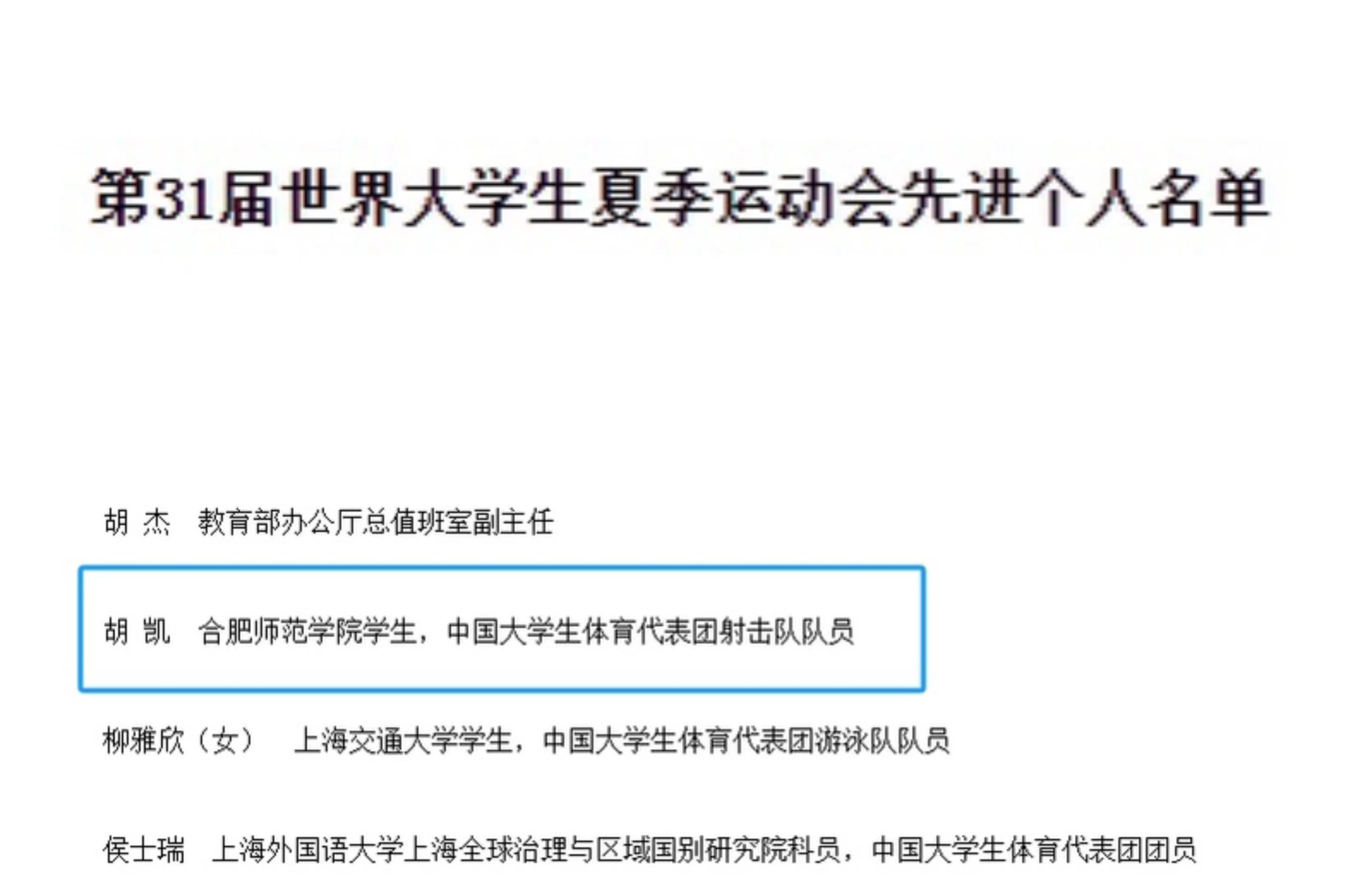 夏琦、胡凯、苏雨恒三位学生在成都世界大学生夏季运动会上,大力弘扬中华体育精神和“自强不息、追求卓越”的合师精神,顽强拼搏、奋勇争先,为国争了光,为学校争得了荣誉,充分展现了beat365中文官方网站学生良好的精神风貌和体教融合的显著成效。下一步,学院将持续深化体教融合,大力推动学生体育锻炼和文化学习协调发展,持续探索竞技体育人才培养新模式,更好助力安徽体育事业高质量发展,为全面建设现代化美好安徽贡献合师力量!(体育科学学院:钱昶臻)