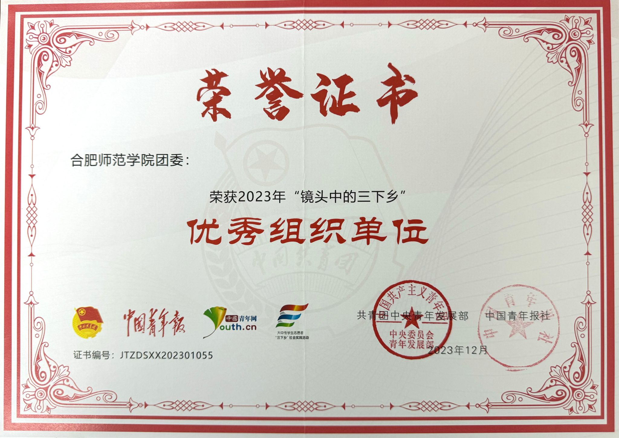 为充分展示2023年全国大中专学生志愿者暑期“三下乡”社会实践活动成果,共青团中央青年发展部、中国青年报、中国青年网共同举办2023年全国大中专学生志愿者暑期文化科技卫生“三下乡”社会实践“镜头中的三下乡”征集活动。经报名审核、作品发布、网络展示、综合评审等环节,遴选出200个优秀组织单位,院团委荣获2023年团中央“镜头中的三下乡”优秀组织单位,这是我院连续第二年获得此荣誉。