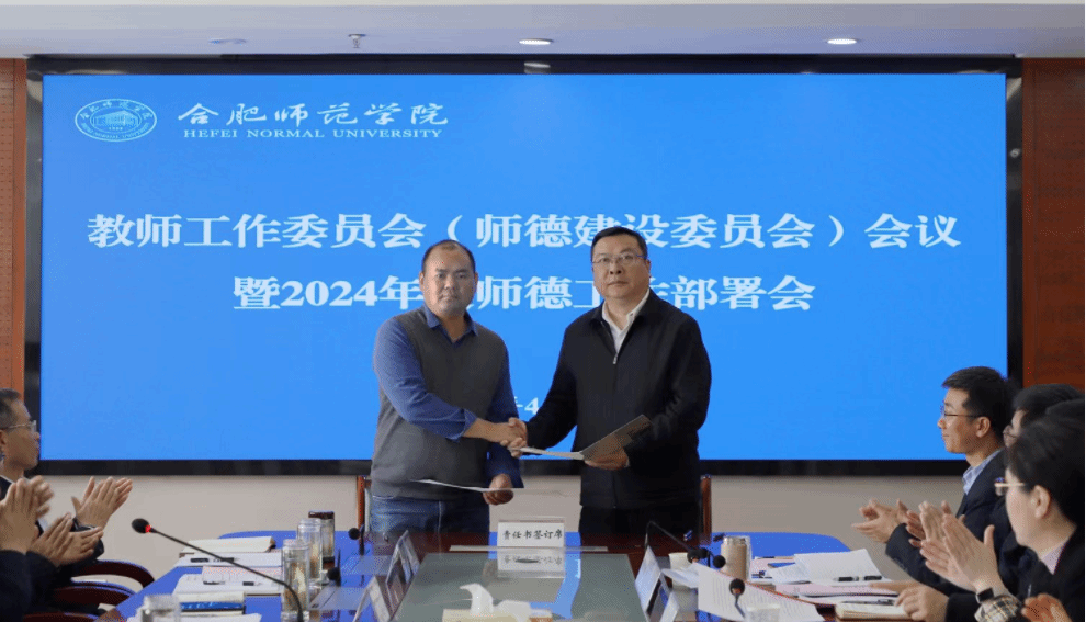 周端明全文领学了教育部《新时代高校教师职业行为十项准则》。党委教师工作部、人事处汇报了学院2024年师德师风建设4个方面12项工作的计划安排。与会二级学院和师德建设工作组相关职能部门就本单位师德师风建设情况及下一步工作进行了交流发言。