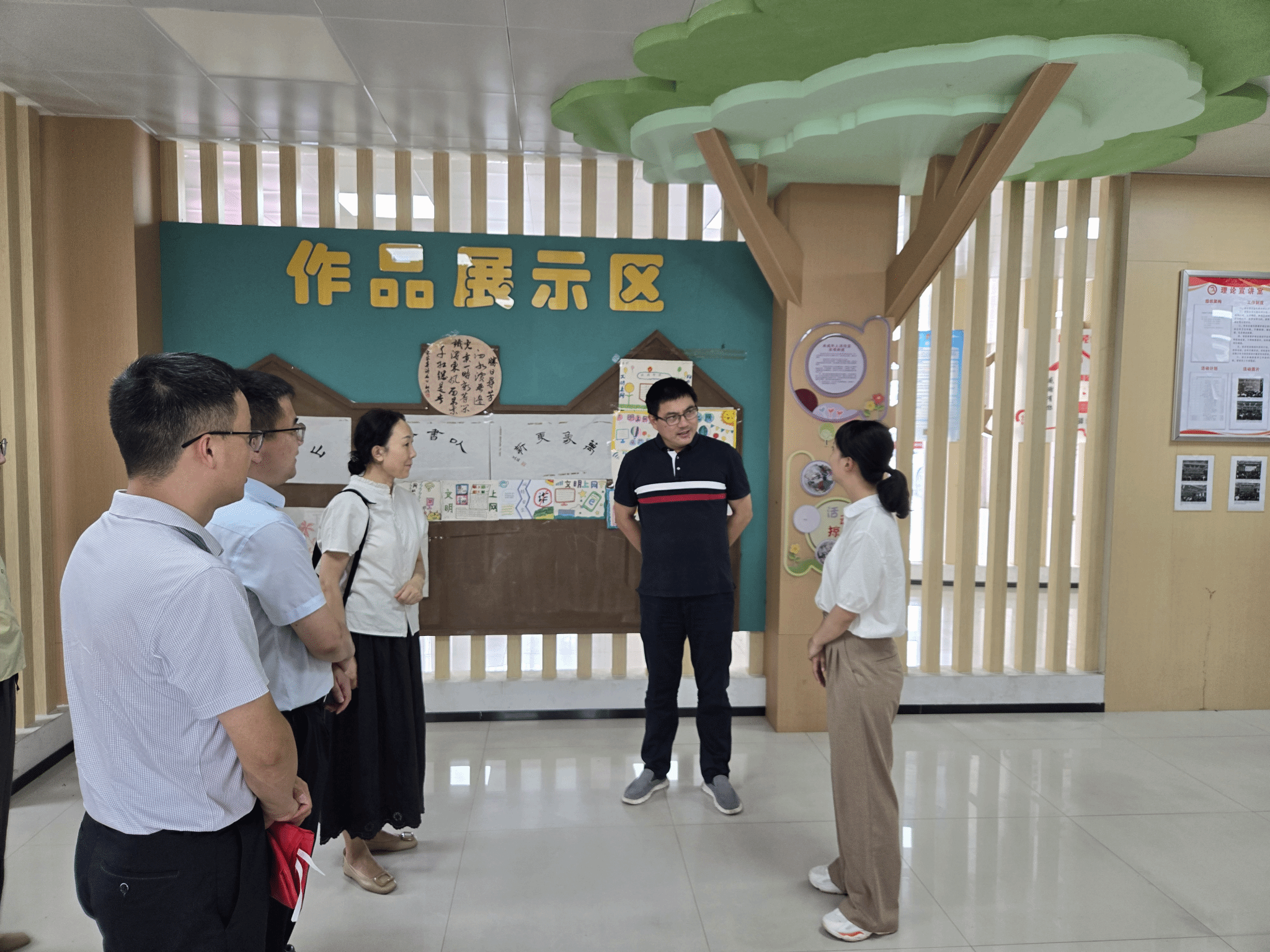 在家发镇行知学堂,周端明一行现场聆听“小先生”讲授的绘画脸谱课,并观看小学员的绘画作品,对“小先生”弘扬中华优秀传统文化的做法以及小学员绘画出的脸谱表示赞扬。周端明与“小先生”们亲切交流,询问了他们行知学堂开办情况和基本生活保障情况,对“小先生”们制定的德智体美劳全面培养小学员的课程设置表示赞许,充分肯定了“小先生”所展现的良好精神风貌和志愿服务精神。周端明与小学员们亲切交流,询问他们这个暑假的收获。周端明向“小先生”们赠送了慰问品、向小学员们赠送了学习用品,并合影留念。