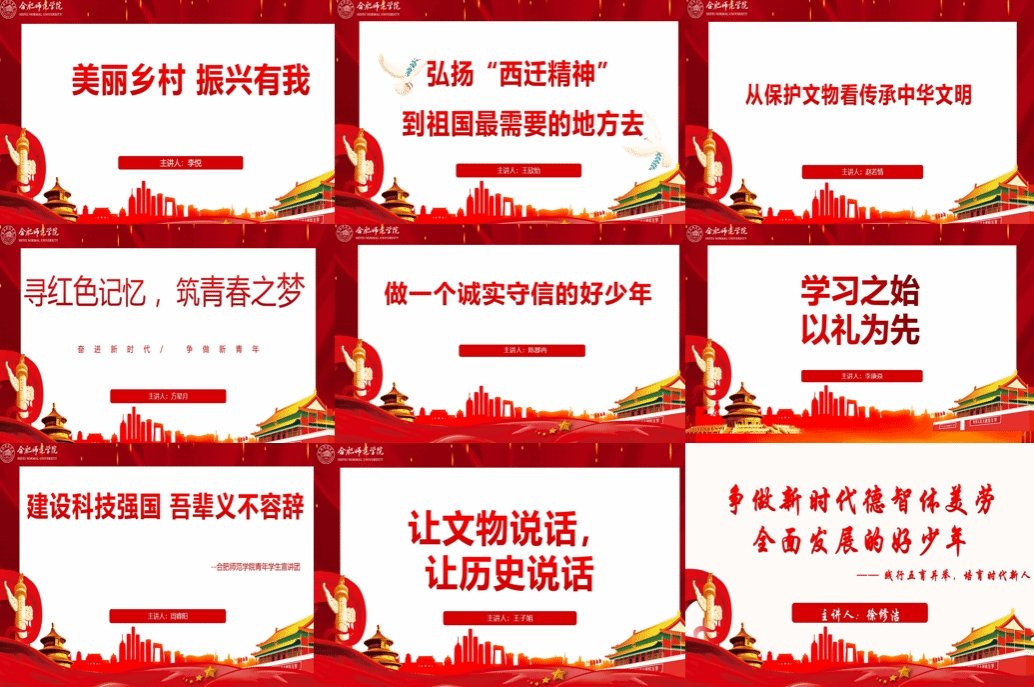 活动期间,宣讲团成员巧妙融合生活案例、视频素材与热点新闻,通过故事讲述、情景模拟、互动问答等多元化形式,将抽象的理论知识转化为生动具体的实践体验。李悦同学以《美丽乡村,振兴有我》为题,结合乡村综艺节目《种地吧》,介绍了乡村振兴战略的基本内涵;王欣怡同学以《弘扬“西迁精神” 到祖国最需要的地方去》为题,从交通大学校史为切入,讲述了钟兆琳、陈学俊、郑守淇等极具“西迁精神”的代表人物事迹;赵若情同学以《从保护文物看传承中华文明》为题,展示了革命博物馆、红色遗址等馆藏文物风貌,强调了文化遗产保护的重要性;方星月同学以《寻红色记忆,筑青春之梦》为题,从“烈火中的邱少云”“董存瑞炸碉堡”“英勇就义的夏明翰”三个红色故事展开,引导小朋友领悟红旗渠精神、红船精神、抗战精神等红色精神;陈郡冉同学以《做一个诚实守信的好少年》为题,介绍中国传统哲学“讲仁爱、重民本、守诚信、崇正义”文化内涵,强调“为人诚实、言而有信”的重要性;徐琦同学以《少年进步 国家向前》为题,聚焦“扣好人生的第一粒扣子”话题,阐释了习近平总书记深情寄语新时代好儿童的深刻内涵;李康焱同学以《学习之始,以礼为先》为题,引用《孝经》《论语》《礼》等经典著作,结合社会主义核心价值观,介绍了“少年知礼”的重要意义和主要做法;李梦瑶同学以《守护历史根脉,传承文化薪火》为题,以青少年参与文化遗产宣传的案例为切入点,介绍了文化遗产的现实意义,鼓励青少年投身文化遗产保护,共同守护精神家园;周睿阳同学以《建设科技强国,吾辈义不容辞》为题,展示了新时代以来我国科技创新发展的重要成就,阐释了创新驱动战略的基本内涵;王雪同学以《有理想、敢担当、能吃苦、肯奋斗》为题,阐释了新时代中国青年的使命与担当,并从学习、生活和实践等方面向青少年提出成长建议;王子旭同学以《要让文物说话,让历史说话》为题,例谈传统节日、民间艺术、传统工艺、国宝文物等中华优秀传统文化的历史底蕴,强调中华优秀传统文化创造性转化、创新性发展的重要意义;陈艺杉同学以《绿水青山就是金山银山》为题,展示了环巢湖湿地治理的切实成效,阐释了习近平生态文明思想重要标志的“两山理论”内涵,介绍了低碳生活的主要做法;徐修洁同学以《争做新时代德智体美劳全面发展的好少年》为题,解读了习近平总书记深情寄语新时代好儿童重要讲话精神,从“从小学习做人、从小学习立志、从小学习创造”提出学习建议;智慧同学以《传承五四薪火 争做时代少年》为题,回顾了五四运动历史,鼓励小朋友以实际行动诠释五四精神的时代内涵,发愤图强做国之栋梁。