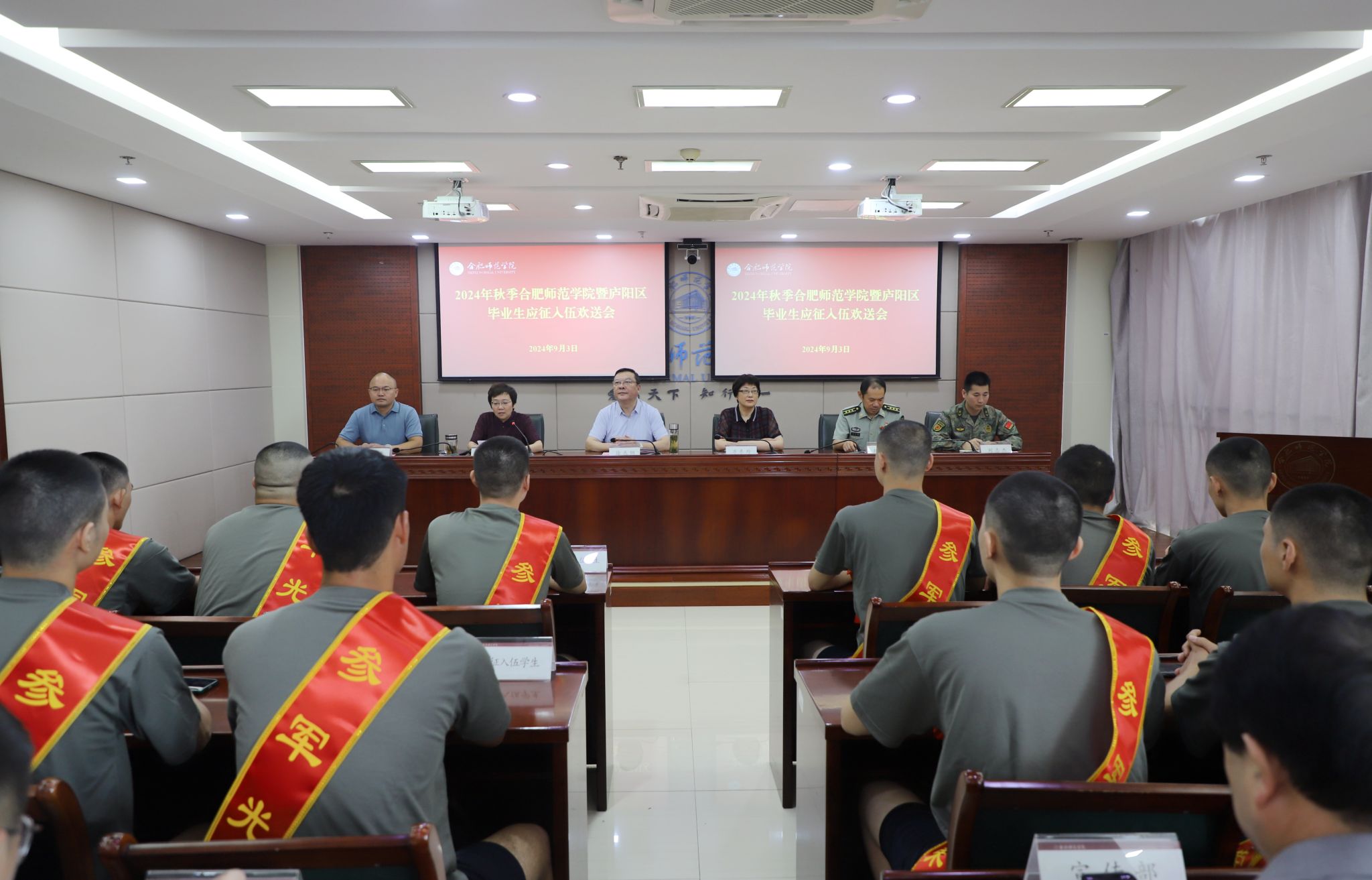 9月3日上午,学院2024年秋季应征入伍毕业生欢送会在锦绣校区行知楼举行。院党委书记徐成钢,院党委副书记、院长方东玲,合肥市庐阳区人武部部长韩方景,庐阳区三孝口街道党工委副书记、主任周继黄,庐阳区三孝口街道人武部部长刘志杰,学院征兵工作领导组成员、2024届毕业班辅导员、2024年应征入伍毕业生及2021级学生代表参加会议。会议由院党委副书记梁立昌主持。