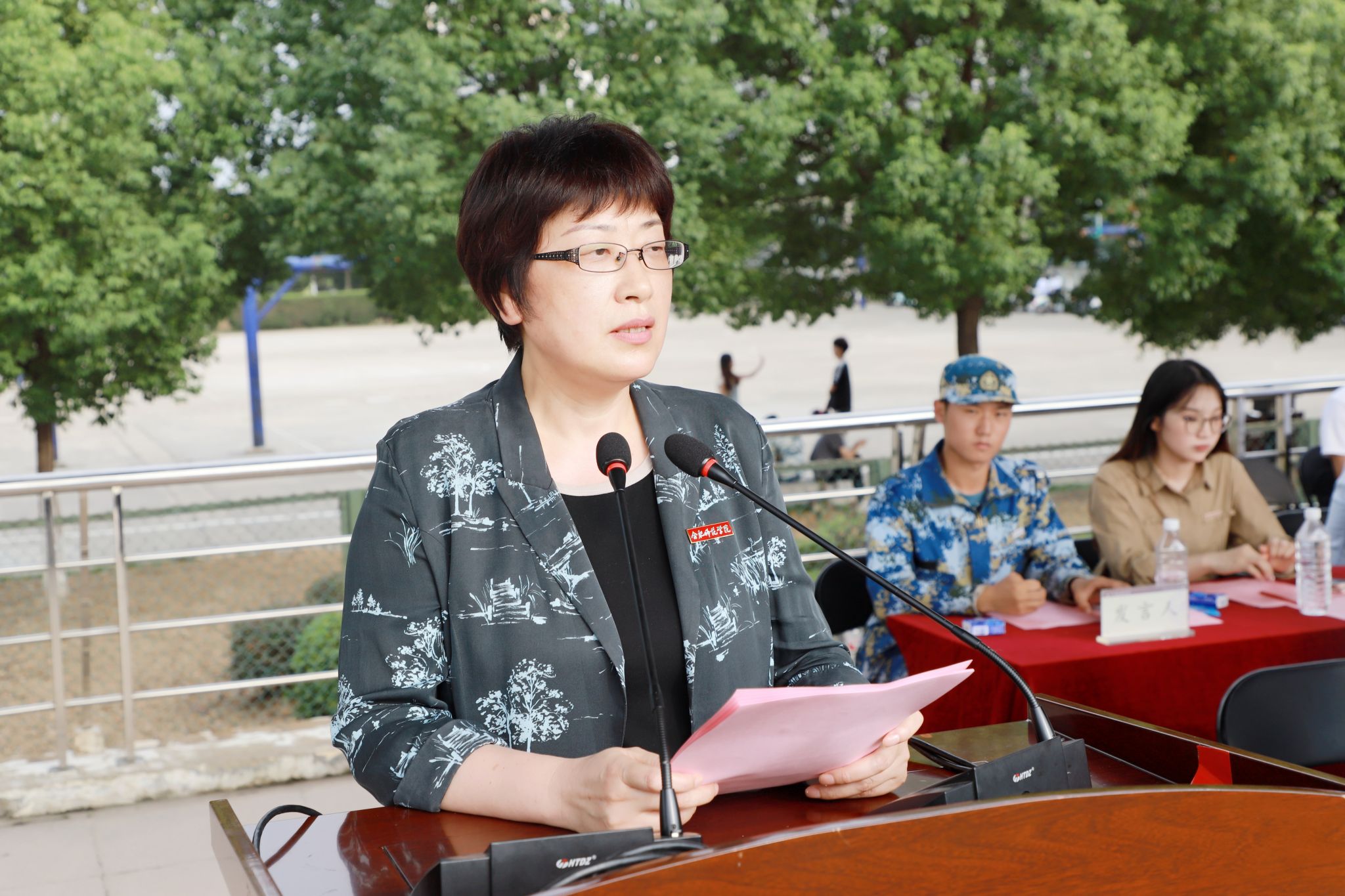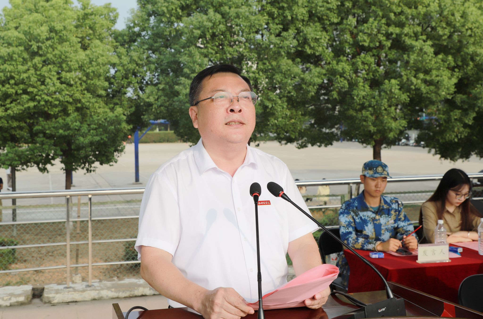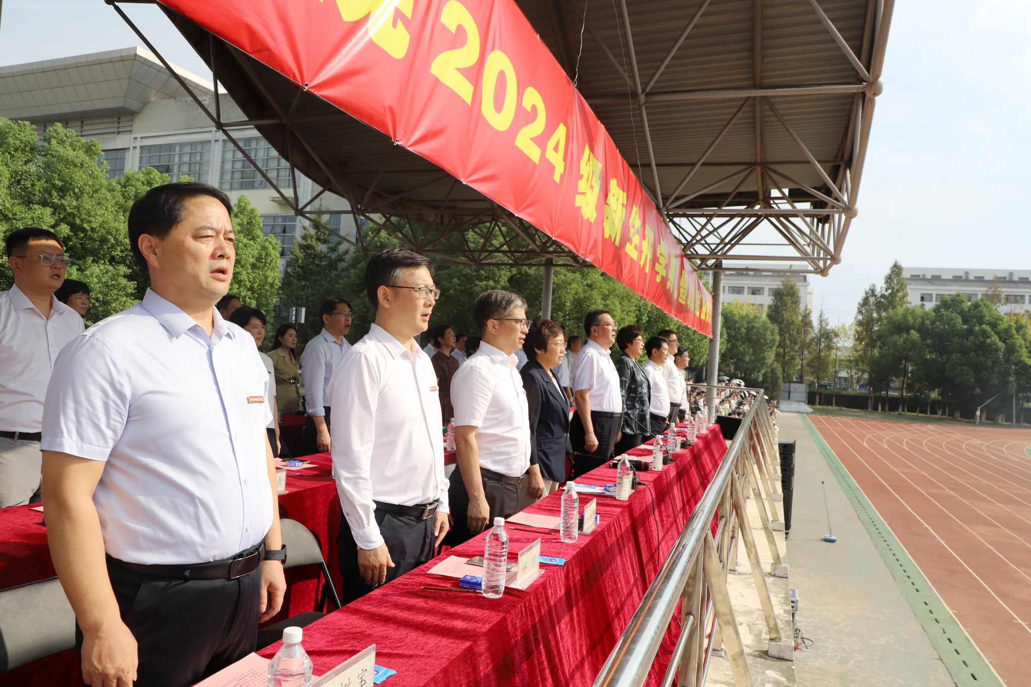 院领导徐成钢、方东玲、梁立昌、徐文林、华银峰、周端明、郝宁,党委委员赵帮恚、常树宝出席仪式。院学生工作领导组成员单位主要负责人,各二级学院党政主要负责人、分管学生工作副书记,教师代表,新生辅导员,军训教官,全体本科、研究生新生等参加仪式。锦绣校区仪式由院党委书记徐成钢主持,滨湖校区仪式由院党委副书记梁立昌主持。