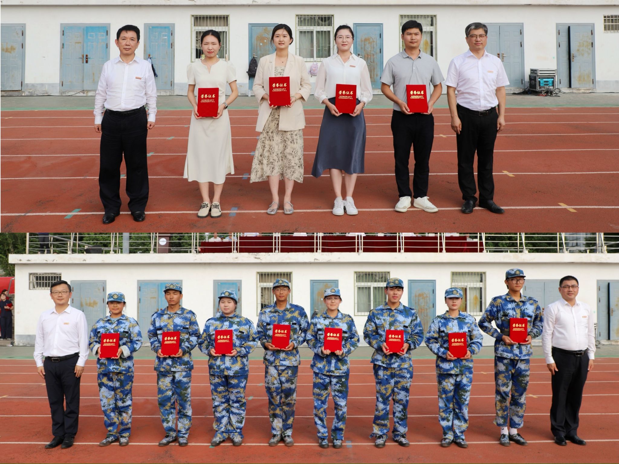 汇报表演结束后,院党委副书记梁立昌、院纪委书记徐文林分别宣读了锦绣校区和滨湖校区《关于表彰2024级新生军训优秀学员、优秀辅导员的决定》。院领导、党委委员分别为优秀辅导员和优秀军训学员颁发荣誉证书。