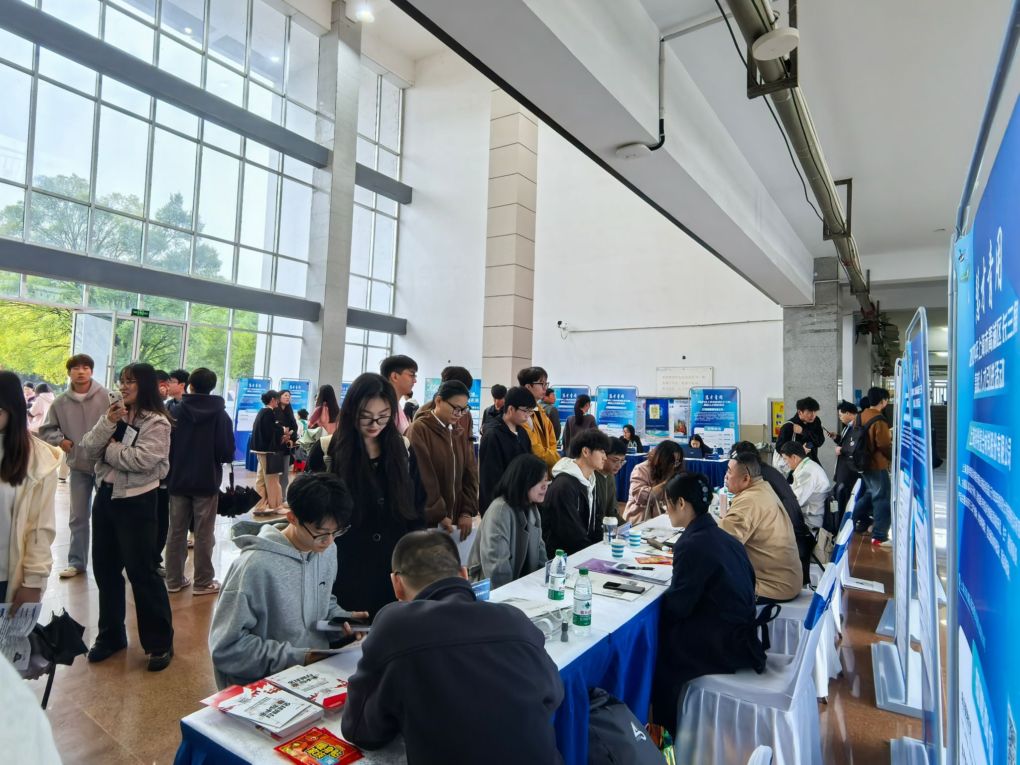 现场求职面试氛围浓厚,毕业生们向自己心仪的单位投递简历,用人单位招聘人员也积极向毕业生介绍公司情况、发展前景和招聘条件,开展现场面试。据统计,招聘会现场投递简历数达1000余份。