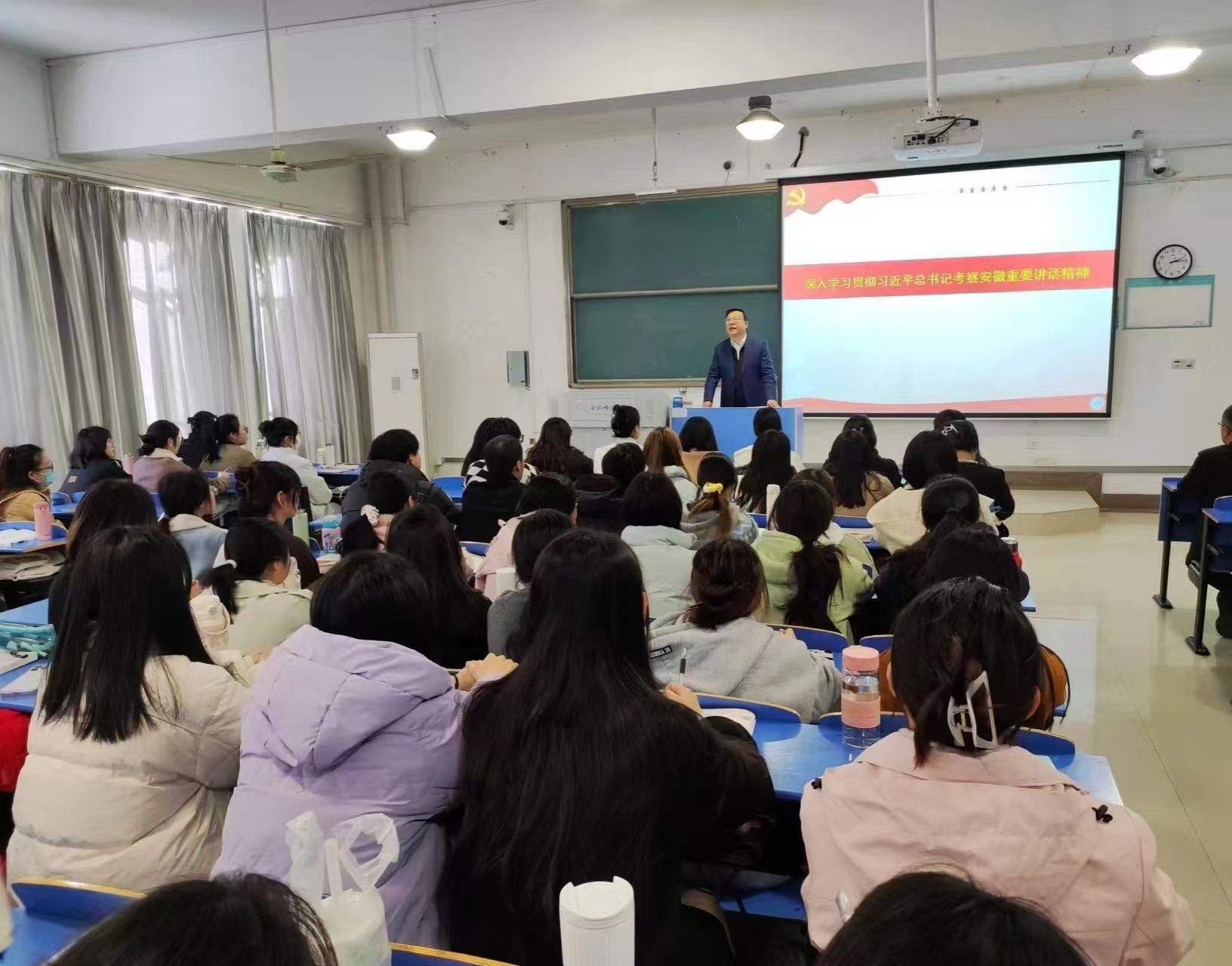 授课中,徐成钢结合党的十八大以来,习近平总书记三次考察安徽的具体情况,详细阐述了习近平总书记重要讲话精神的重大意义和丰富内涵。徐成钢指出,在中华人民共和国成立75周年的重要历史节点,在全省上下深入学习贯彻党的二十届三中全会精神的关键时刻,习近平总书记亲临安徽考察,在安徽发展史上具有重要里程碑意义。习近平总书记的重要讲话既部署了“过河”的任务,又教授了“过河”的方法,具有极强的时代感召力、思想引领力和实践穿透力,是指引安徽和学校各项事业发展的根本遵循和行动指南。