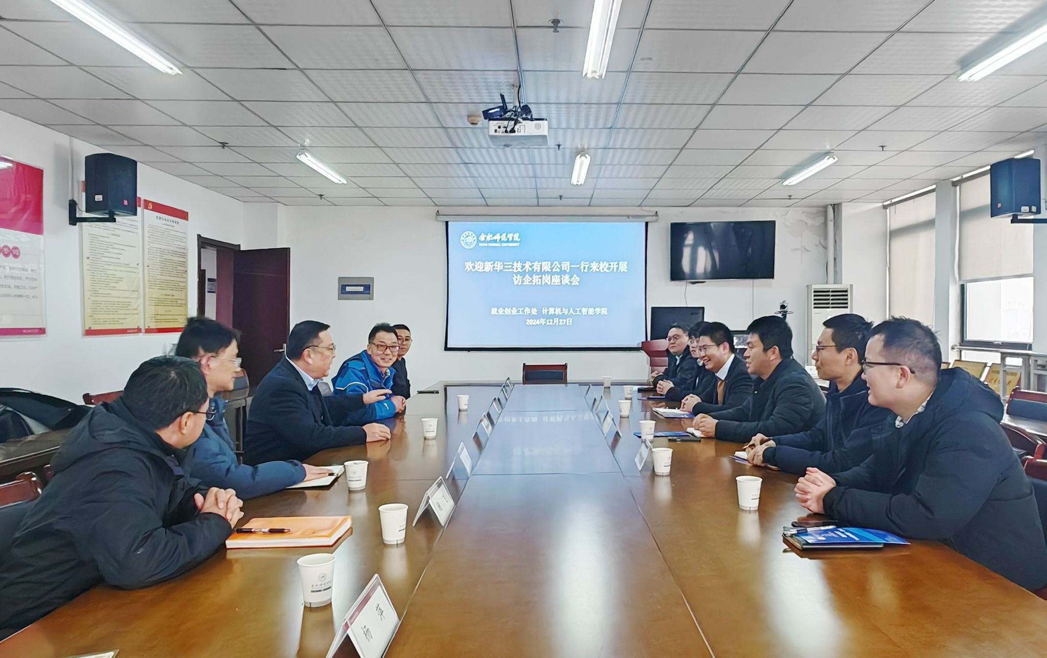 为进一步开拓毕业生就业岗位,畅通人才供需信息渠道,加强校企合作,12月27日,计算机与人工智能学院邀请新华三技术有限公司来校开展专场招聘。招聘会期间,学院开展了“访企拓岗促就业”座谈会,院党委书记徐成钢与新华三安徽代表处副总经理李文涛一行座谈交流,就业创业工作处负责人,计算机与人工智能学院党政领导班子、网络工程专业负责人、毕业班辅导员参加座谈会。