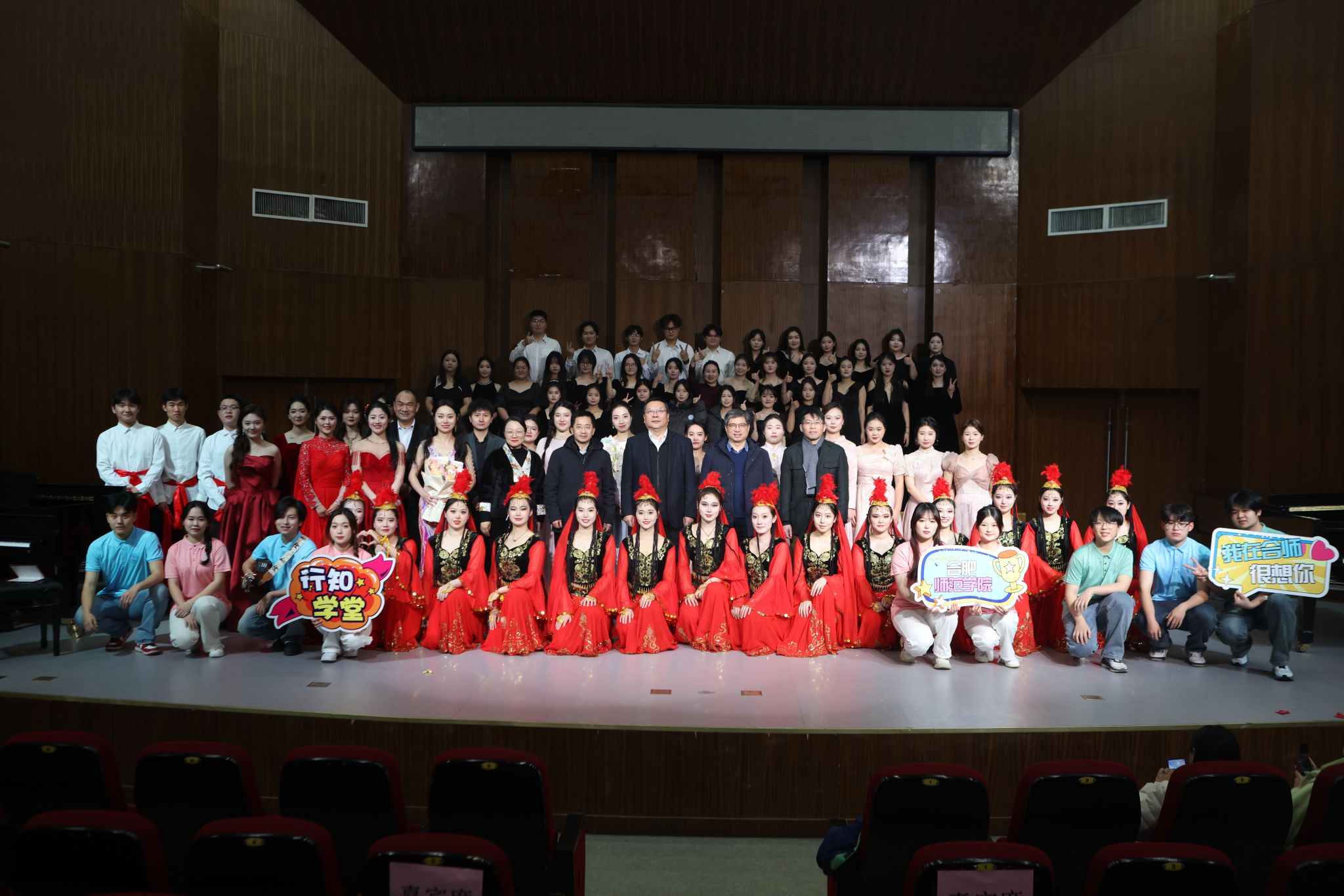 晚会特别增设原创歌曲单元,《皖美乡村》《我在合师很想你》等曲目,不仅展现了学院师生的创作才华,更让大家感受到了昂扬向上的校园文化氛围,以及合师学子对文化振兴、共建美好乡村的使命和担当。