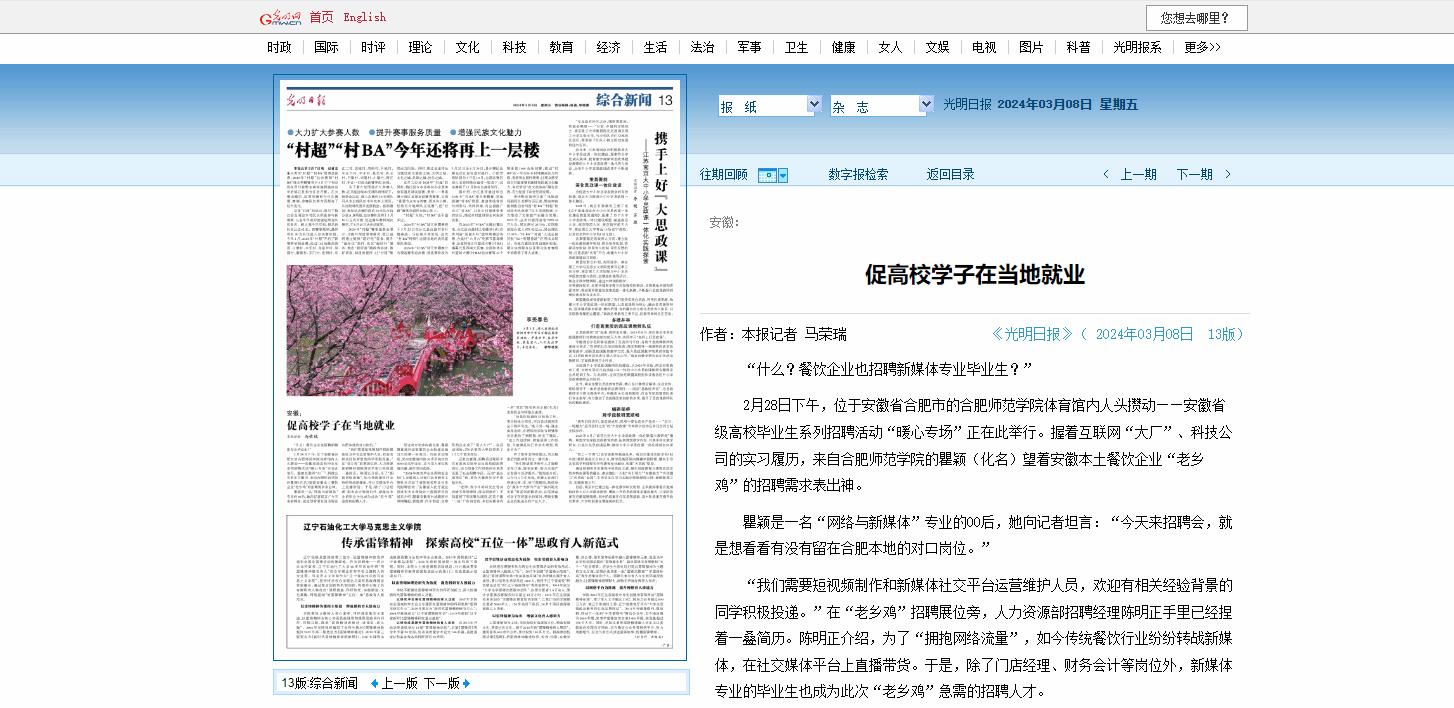 《光明日报》等主流媒体报道beat365官网促就业相关举措