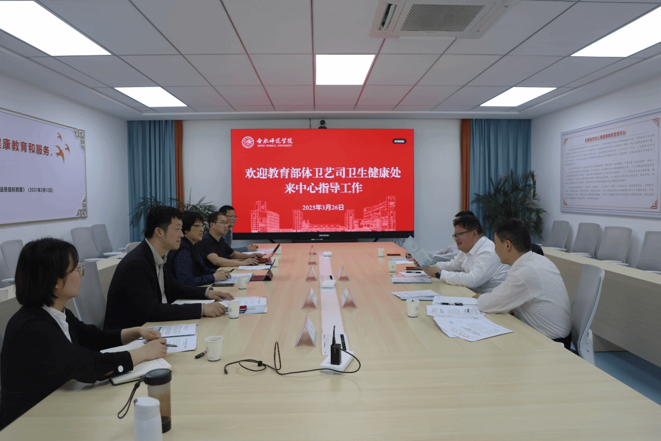3月26日下午,教育部体卫艺司卫生健康处处长樊泽民一行来我院调研安徽省学生心理健康教育指导和发展中心,安徽省教育厅学生处处长马家松,院党委副书记、院长方东玲陪同调研,教育与心理科学学院负责人及教师代表参加调研座谈会。