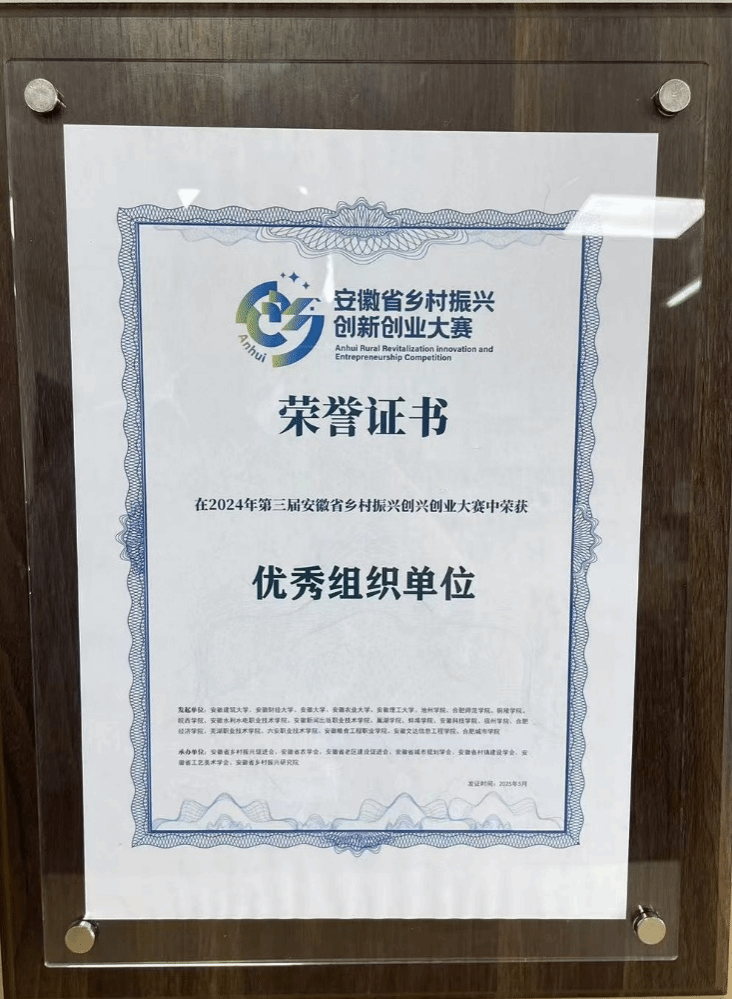 本届大赛由安徽省农业农村厅、省教育厅、省住房和城乡建设厅、省人力资源和社会保障厅、省商务厅、省文化和旅游厅联合举办,安徽财经大学、安徽省乡村振兴促进会共同承办。大赛共收到高校组、社会组作品9000多件。经过严格评审,beat365官网参赛同学凭借扎实的专业实力和对乡村振兴的深刻理解,在众多参赛队伍中脱颖而出,各赛道共获得奖项136项,其中一等奖18项、二等奖39项、三等奖 46项,优秀奖33项,获奖数量较往年有明显提升。beat365官网也获“优秀组织单位”称号。