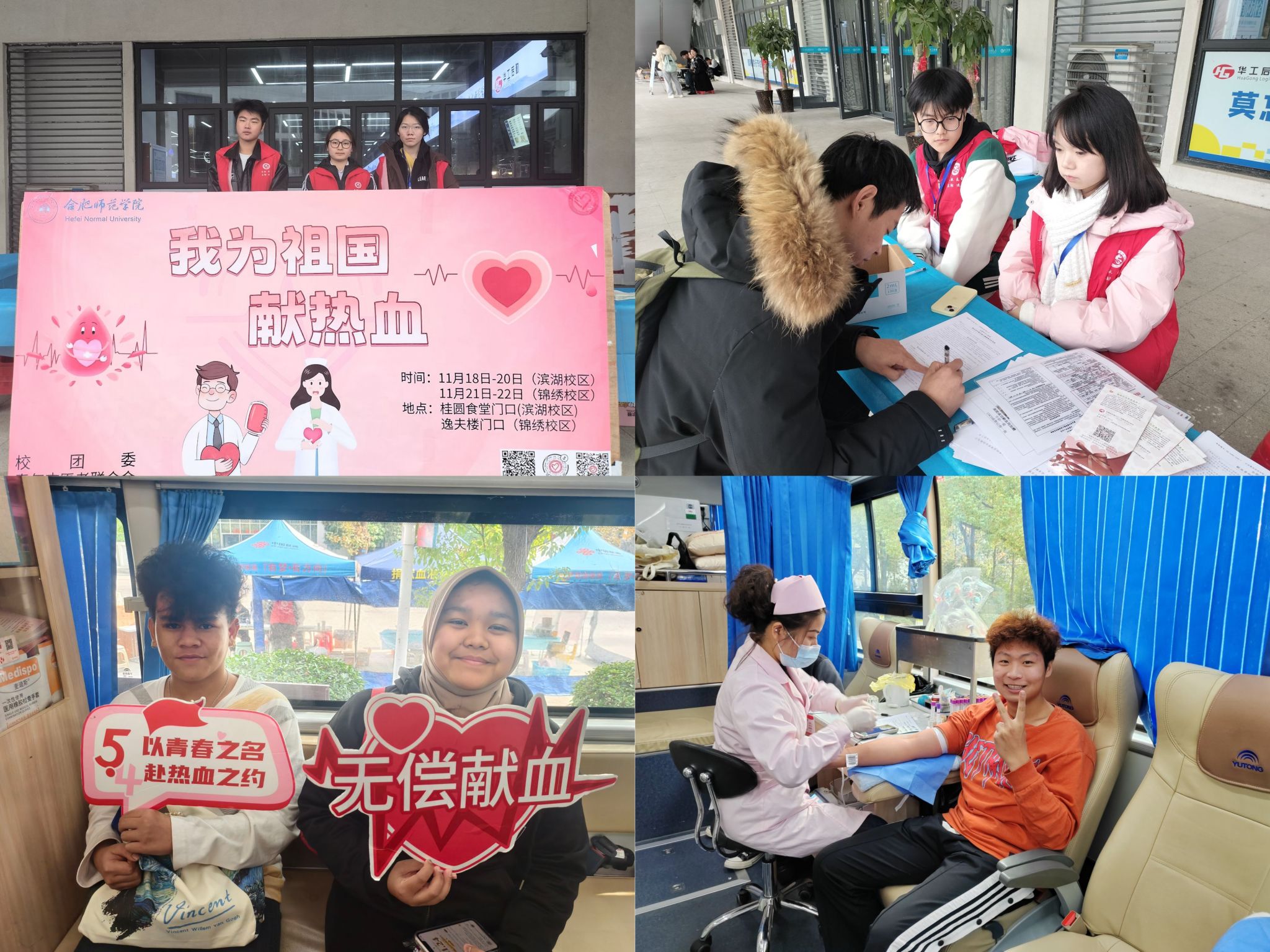 多年来学院始终秉持高度的社会责任感,将无偿献血工作视为培育学生奉献精神的重要实践平台。2024年度,我院精心策划并开展“我为祖国献热血”公益行动,通过线上线下融合的创新模式,组织开展科普宣传、志愿服务等系列活动,在校园内营造出浓厚的公益氛围,全年师生累计参与无偿献血达373人次,献血总量达102540毫升,为保障合肥地区临床医疗用血需求作出了积极贡献。