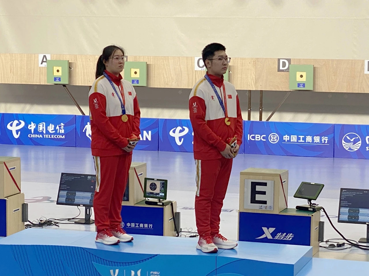 本网讯 8月2日,在成都举行的第三十一届世界大学生夏季运动会射击项目中,学院2021级体能训练专业(现役运动员)学生胡凯与国家队队友张绮奋力拼搏获得10米气手枪混合团体金牌,为中国代表团再添1金。继夏琦同学获得安徽首金后,胡凯同学再添两金一银,金牌总数实现第三金。(体育科学学院)