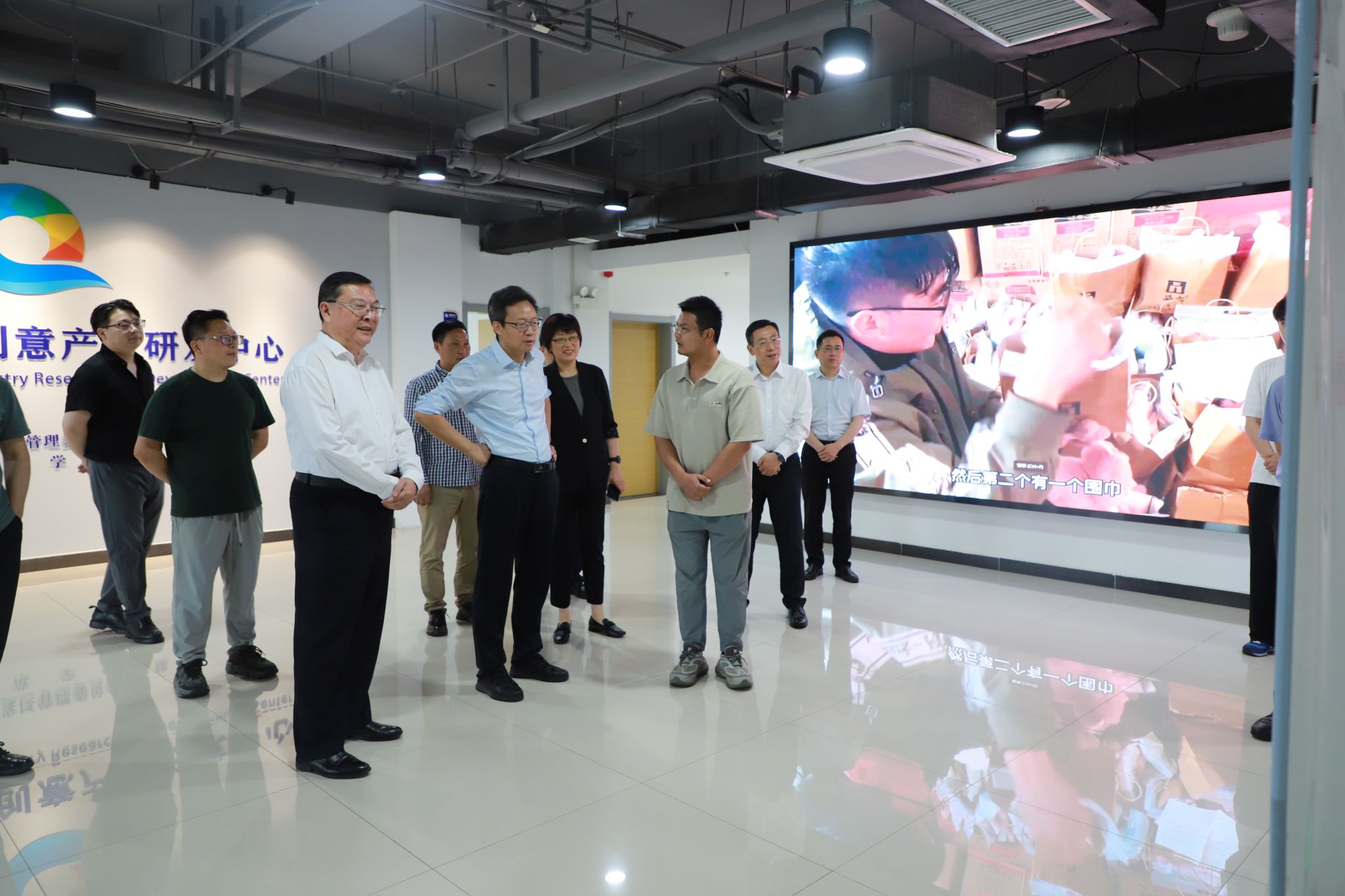 吴爱华一行走访了beat365中文官方网站与合肥市政府共建的数字文化产业研究院,详细了解了研究院的运营模式、项目进展以及为学生提供的实践与就业机会,对其在促进文化产业与教育融合、助力学生就业方面发挥的积极作用给予了充分肯定。