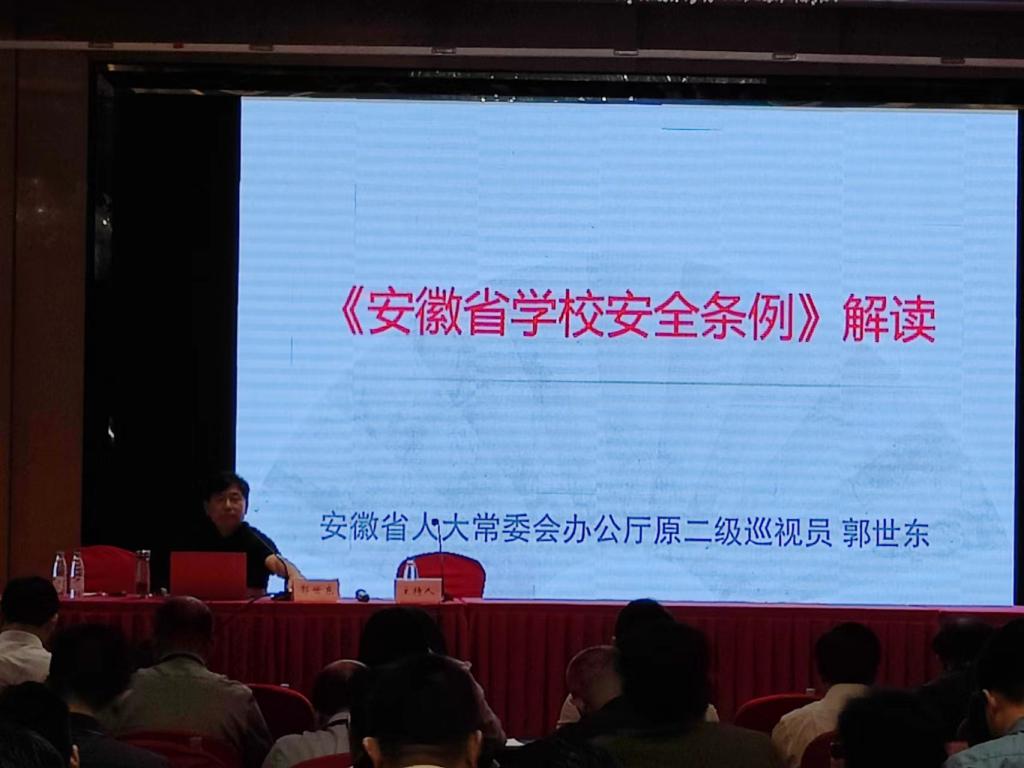 本网讯 7月25日至27日,beat365中文官方网站在丰大国际大酒店成功承办安徽省2023年校园安全管理专项培训班,本次培训班由省教育厅主办,beat365中文官方网站承办。各省辖市教育行政部门负责中小学幼儿园安全管理工作负责同志、职能科(处)室主要负责同志,各县(区、市)教育行政部门负责中小学幼儿园安全管理工作负责同志,部分中小学校长、幼儿园园长等共计201人参加培训。培训班安排专家讲座2场,参观1场,以校园安全为主题的交流研讨2场次。