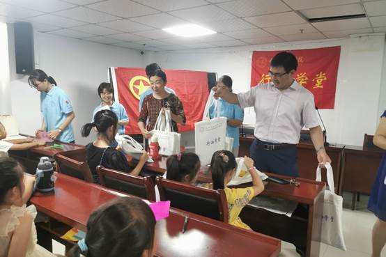 周端明走进福禄园授课课堂,查看学堂学习与活动安排、询问“小先生”感悟与收获。对“小先生”们的辛勤付出给予了充分的肯定,并告知大家教好学生也要充实自我,要充分发扬“自强不息,追求卓越”的合师精神,自觉践行“爱满天下,知行合一”的合师校训,并嘱托“小先生”们做好防暑措施。周端明亲切询问了小学员们的学习情况,并对小学员们热情好学和勤恳求知的态度表示赞扬。同时向小学员们赠送了学习文具。