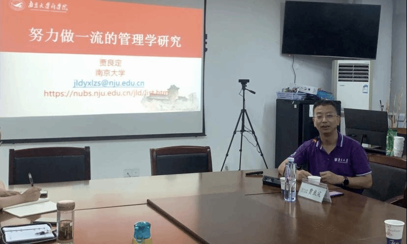 本网讯 7月21日,南京大学管理学院副院长、我院校友贾良定应邀为经济与管理学院教师作题为“努力做一流的管理学研究”的学术报告。学术报告在行知楼902会议室召开,院党委委员、副院长周端明主持报告会。发展规划处(校友会)、经济与管理学院负责人及全体教师参加报告会。本次讲座系经济与管理学院所策划的提高教师学术论文撰写和科研项目申报水平的系列报告之一。