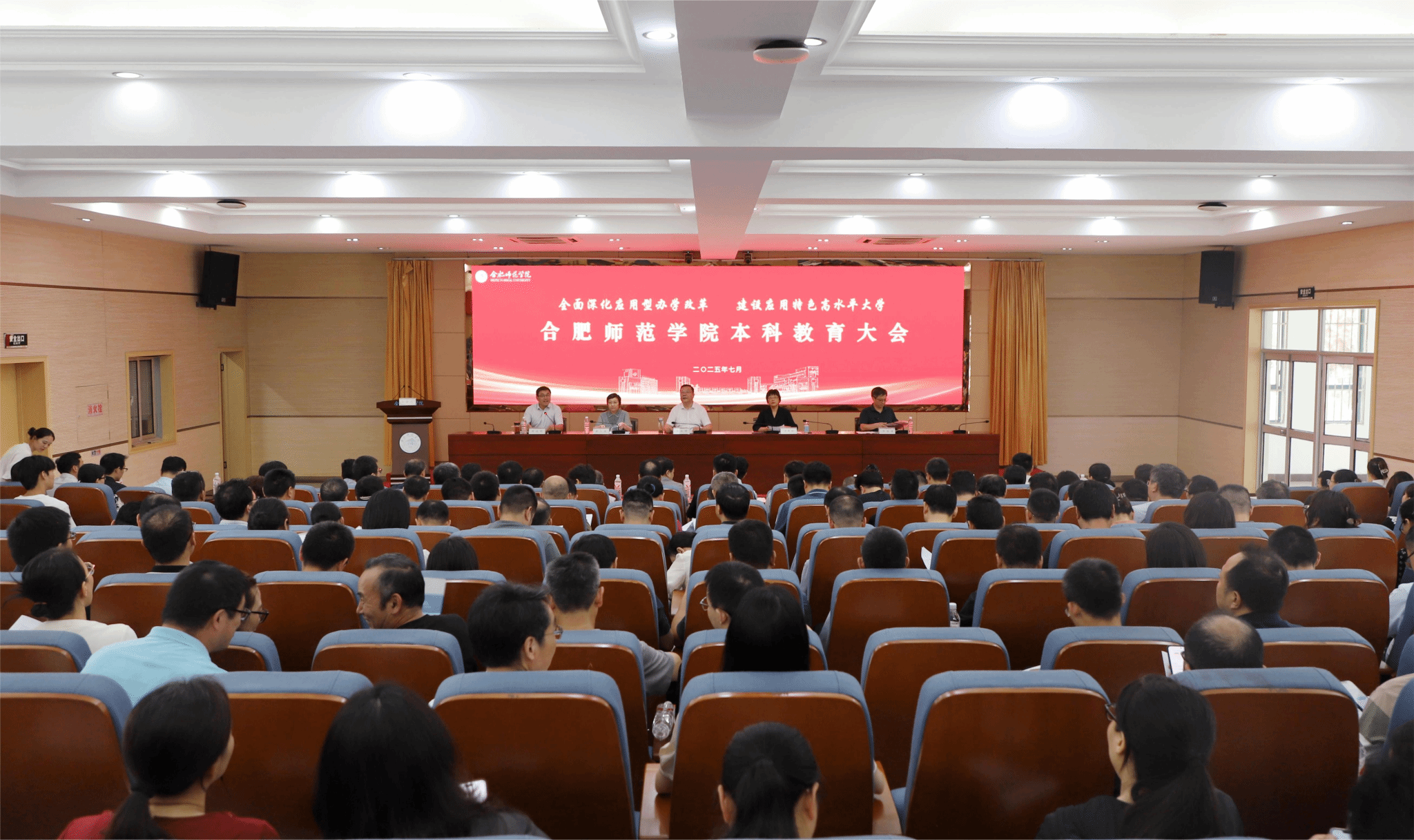 方东玲作《知行合一强应用 追求卓越育新人 奋力谱写本科教育高质量发展新篇章》主题报告。她全面总结了自2020年学院召开本科教育工作会议以来,在统筹推进申硕、“双特”建设、教育教学审核评估、专业结构调整、师资培养考核、教育教学改革、教学资源保障等七个方面取得的重要进展和成果,深刻分析了当前学院在教育教学理念、人才培养模式、专业建设改革、课程改革、实践教学水平、教师教育教学能力等六个方面存在的关键问题。提出了今后三年学院本科教育高质量发展的行动纲领和目标,即重点实施“1722”行动计划,至2028年7月,要基本建成教育理念先进、专业结构优化、产教融合深入、数智赋能有力、满足学生发展的高质量本科教育教学体系,擦亮师范教育底色,彰显产教融合特色,学院教育教学综合实力稳居全省应用型本科院校第一方阵。