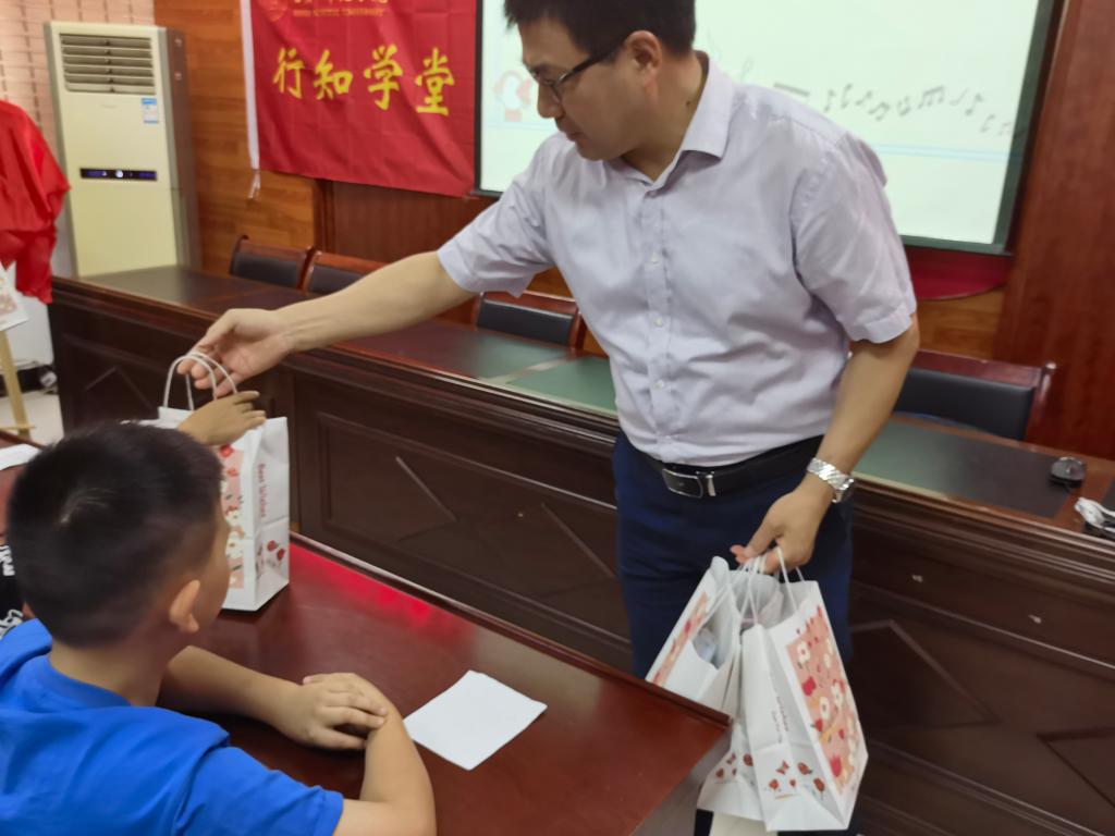 周端明一行实地察看了行知学堂建设情况,为小学员们带来了精美的文具礼品,同时亲切寄语小学员,希望他们可以在行知学堂里度过一个快乐多彩、富有意义的暑假,努力做新时代德智体美劳全面发展的好儿童。在听取“小先生”代表介绍行知学堂教学成果和心得体会后,周端明勉励“小先生”要学习贯彻习近平总书记关于青年工作的重要思想,秉持“爱满天下,知行合一”的校训精神,遵循鼓励式与启发式的教学理念,关爱学堂里每一位小学员的成长,在坚持安全第一的前提下,突出体科院专业特色积极开展课内和课外的实践活动,努力营造积极向上、健康阳光的学习环境,积极助力乡村振兴,让青春在奉献中焕发绚丽光彩。