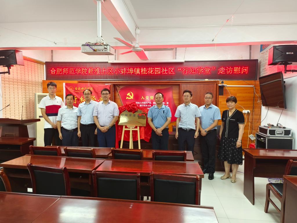 会后,双方还为桂花园社区“蚌埠行知学堂”实践基地共同揭牌。蚌埠市淮上区团委书记、经贸局局长董大为,小蚌埠镇党委副书记李祥龙、团委书记刘莺莺,桂花园社区党总支书记、居委会主任崔伯兰,以及体育科学学院党委书记赵波、党委副书记王飞、团委书记高光健参加了走访活动。