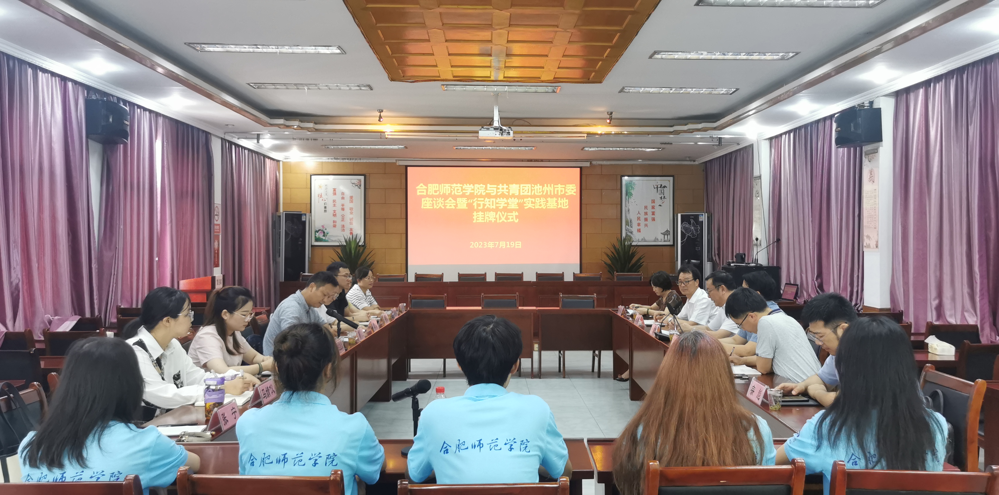 调研中,徐成钢还出席了学院与池州团市委合作交流座谈会暨“行知学堂”实践基地挂牌仪式。座谈会上,池州团市委负责人介绍近年来我院在池州市开办行知学堂的情况,表示团市委将更大力度做好学堂的对接协调和“小先生”们的服务保障工作,希望学院今后能在池州开办更多“行知学堂”,服务更多小学员。孝肃社区负责人转达了辖区居民对行知学堂的高度赞誉,并介绍了相关服务保障工作。行知学堂“小先生”代表郑嘉铭汇报了孝肃社区“行知学堂”开展情况,并围绕实践心得进行发言。