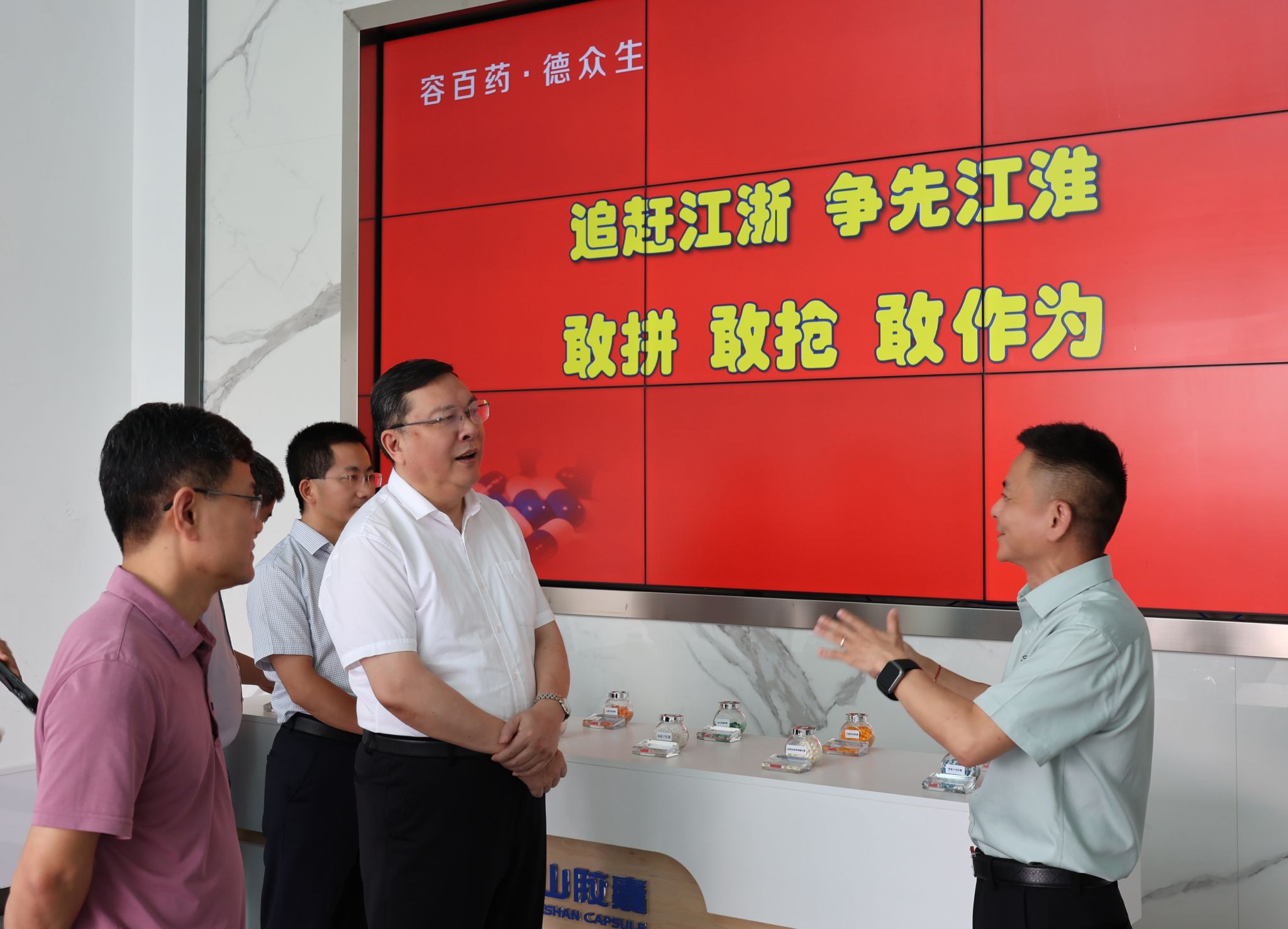 徐成钢一行还在旌德县副县长(挂职)、beat365中文官方网站科研处副处长吕建国陪同下开展访企拓岗活动,实地走访了安徽黄山胶囊股份有限公司、安徽飞翔电器有限公司,参观公司生产车间与研发中心,详细了解企业的发展历程、生产运营、技术创新和人才需求等情况。(组织部、党政办、院团委)